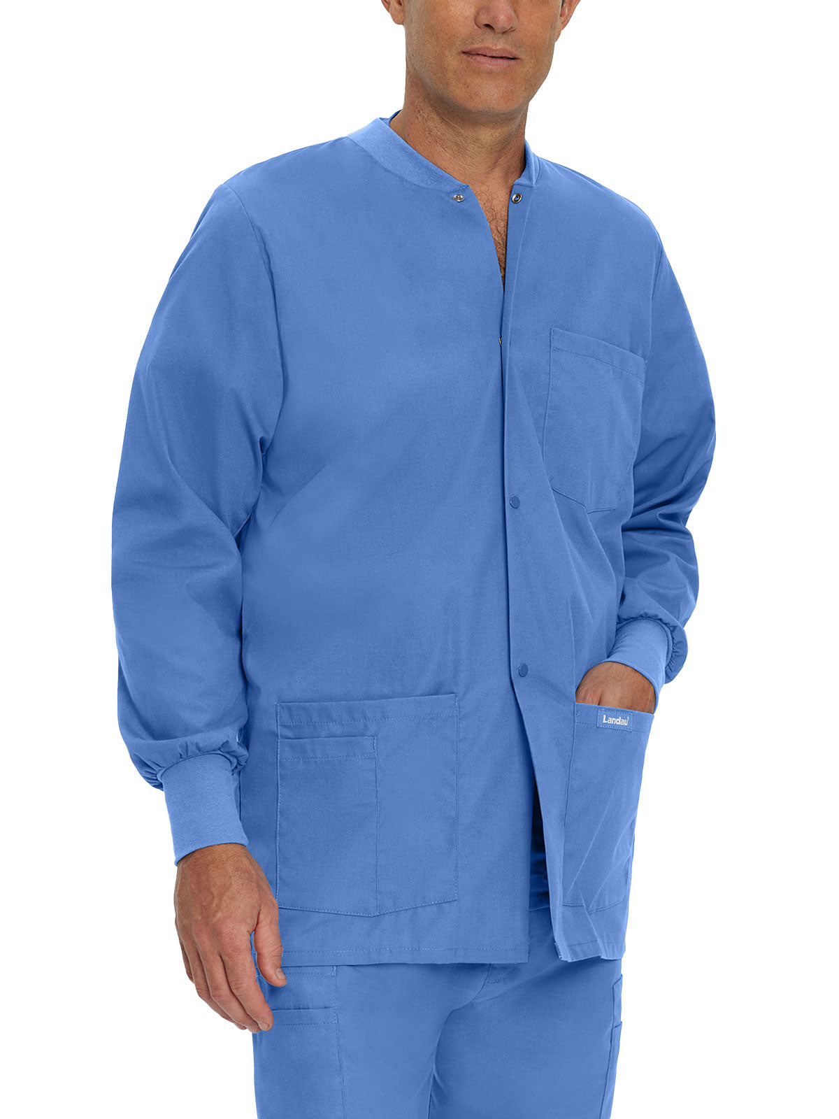 We design quality medical scrubs and medical uniforms with universal appeal. Comfortable and functional, this fabric scrub jacket for men features a movement-friendly fit and snap-front silhouette made for effortless ensemble changes. Five spacious pockets, including one cell phone pocket and built-in pencil/instrument divisions, ensure your medical essentials are always within easy reach. Whether it's Landau scrubs for men or scrubs for women, we're known for producing scrubs that work as hard as you do!