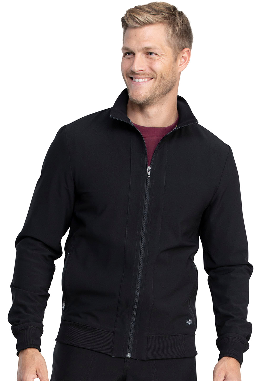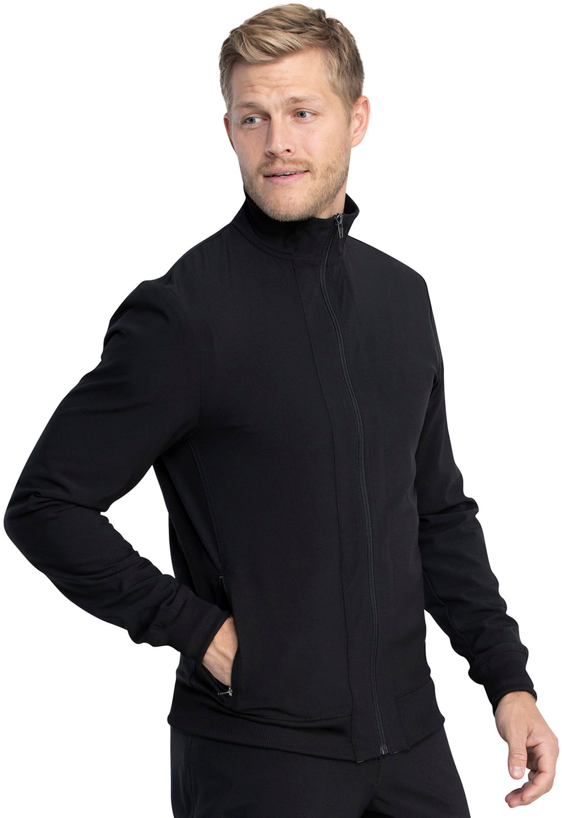 "* Men’s front zip warm up jacket * Dyed-to-match front zipper * Decorative logo tape at the inner back neckband * Functional contrast utility loop at shoulder seam * Two front slash pockets at princess seams * Dyed-to-match micro-knit cuff...