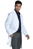 | This Men's Modern fit lab coat has a five button front closure with notched lapels and a bungee ID badge loop on the right lapel. There is also a back yoke seam and center back seam with a kick pleat for freedom of movement. Elastic bungee locker loop at the center back below the collar. There are three pockets: one chest pocket and two front tablet pockets with side entry for easy access to pant pockets. Center back length: 38" |