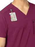 A Men's Traditional fit V-neck top features a chest pocket, two patch pockets, a cell phone pocket, hidden instrument loop, back yoke and side vents. Center back length: 32"_x000D_ Men's Traditional Fit 4 Pockets: Patch Pockets, Chest Pocket, Interior Pocket...