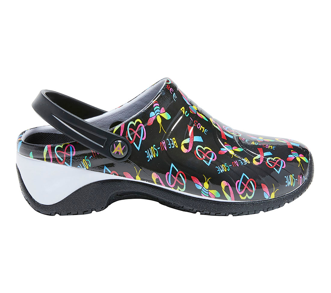 A fun style for men and women, the Unisex Zone features Anywear's signature lightweight and comfortable fit. Slip resistant rubber outsole. Removable EVA insole with ventilation holes. High Rebound Injected Molded EVA upper and midsole for exceptional cushioning and shock absorption. Anywear logos on top head of snap and printed on the insole lining. FEATURES Certainty® antimicrobial insole lining to reduce odor-causing bacteria. Swiveled back strap. Soft, rounded, and roomy toe box for a comfortable fit. Size chart to easily convert women's sizes to men's. Easy to clean with soap and warm water. Heel height: 1 1/2"_x000D_