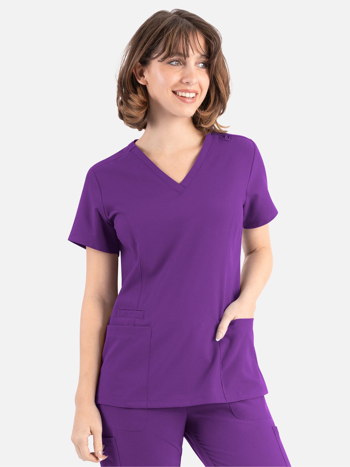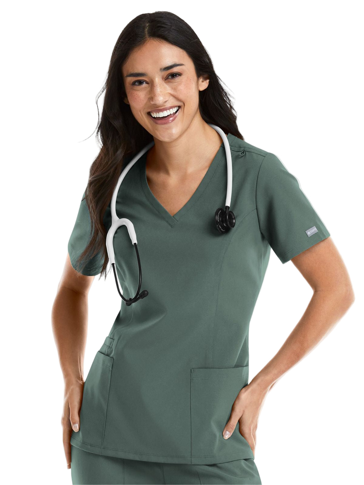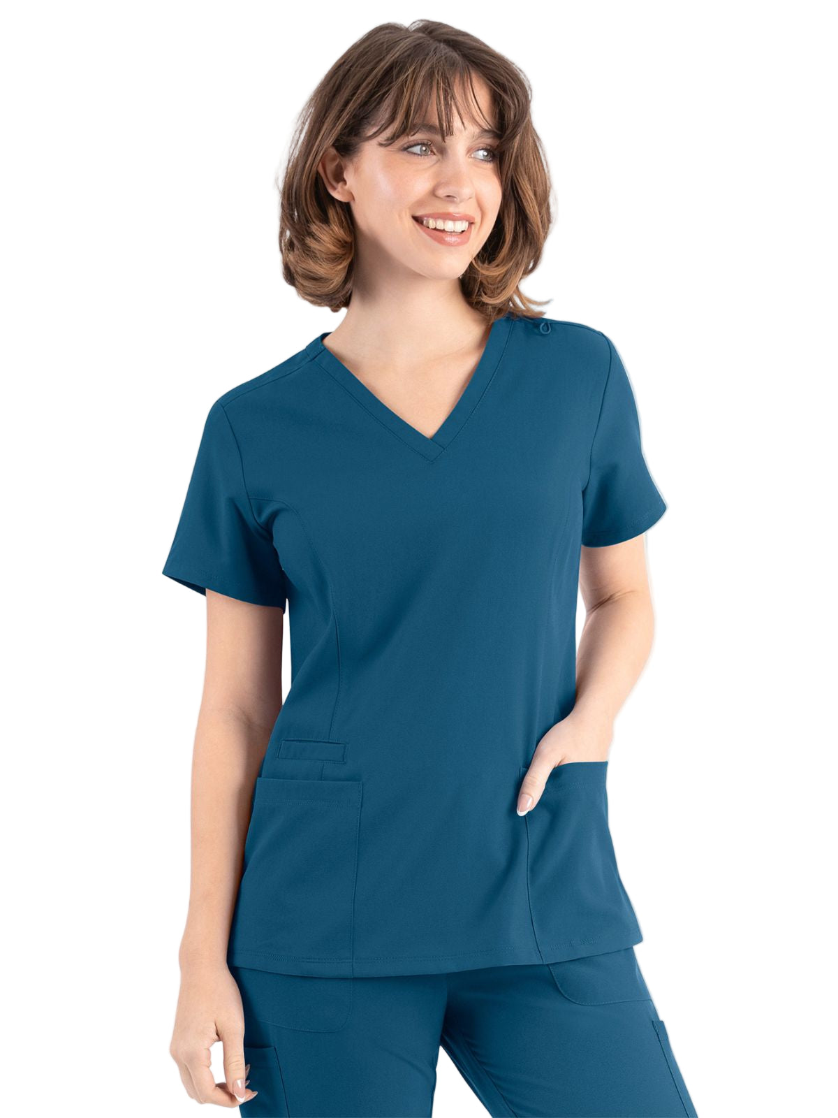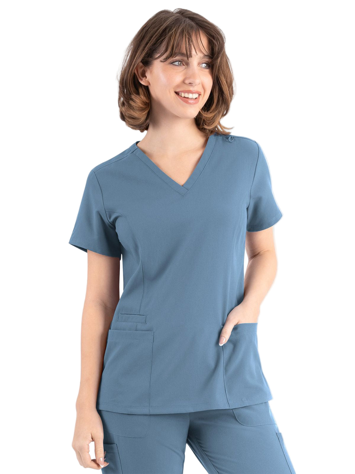 * Front princess seams and back darts for added style and comfort