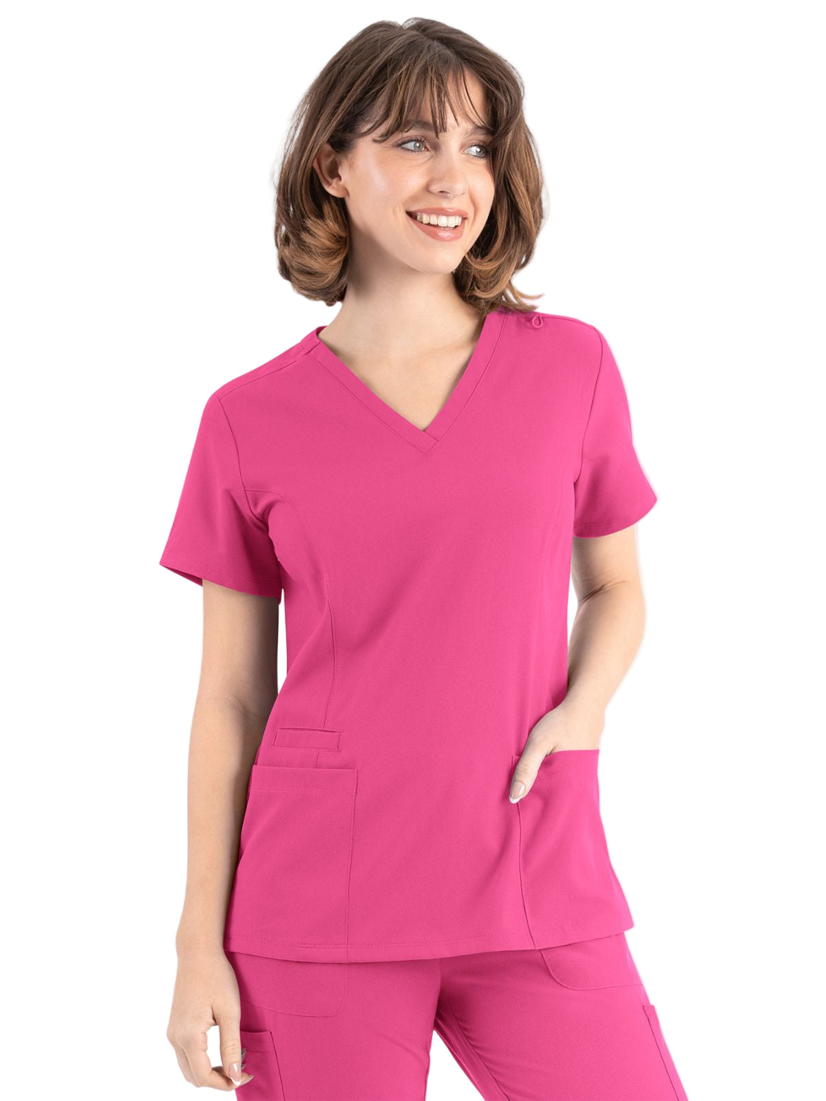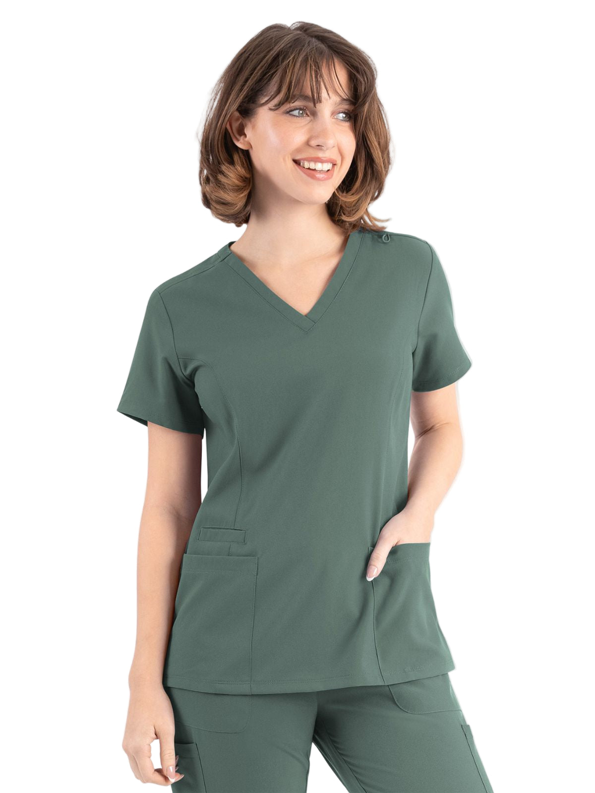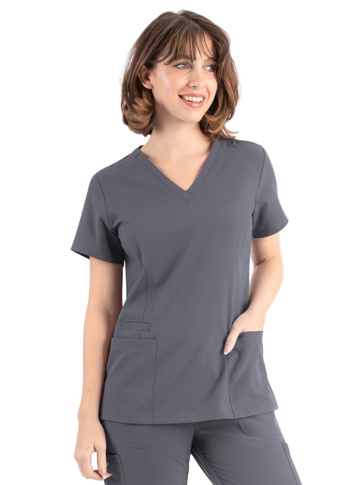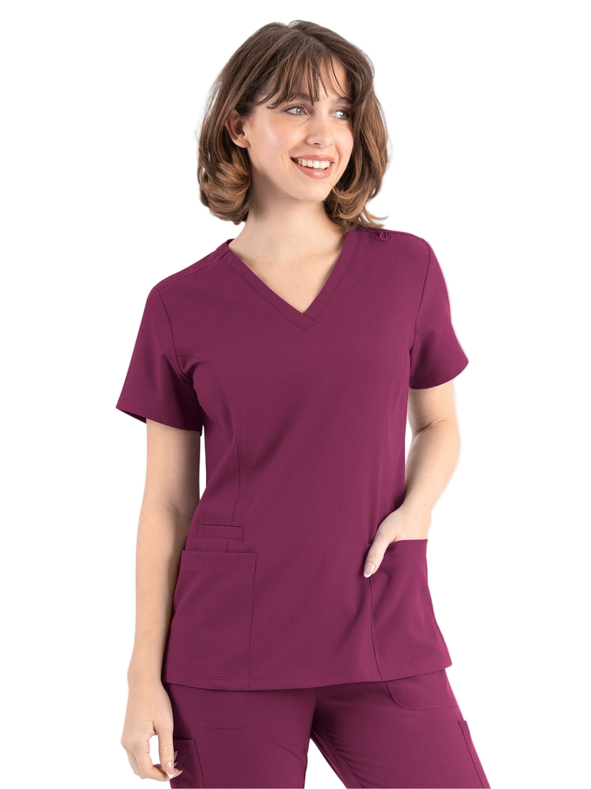 * Front princess seams and back darts for added style and comfort