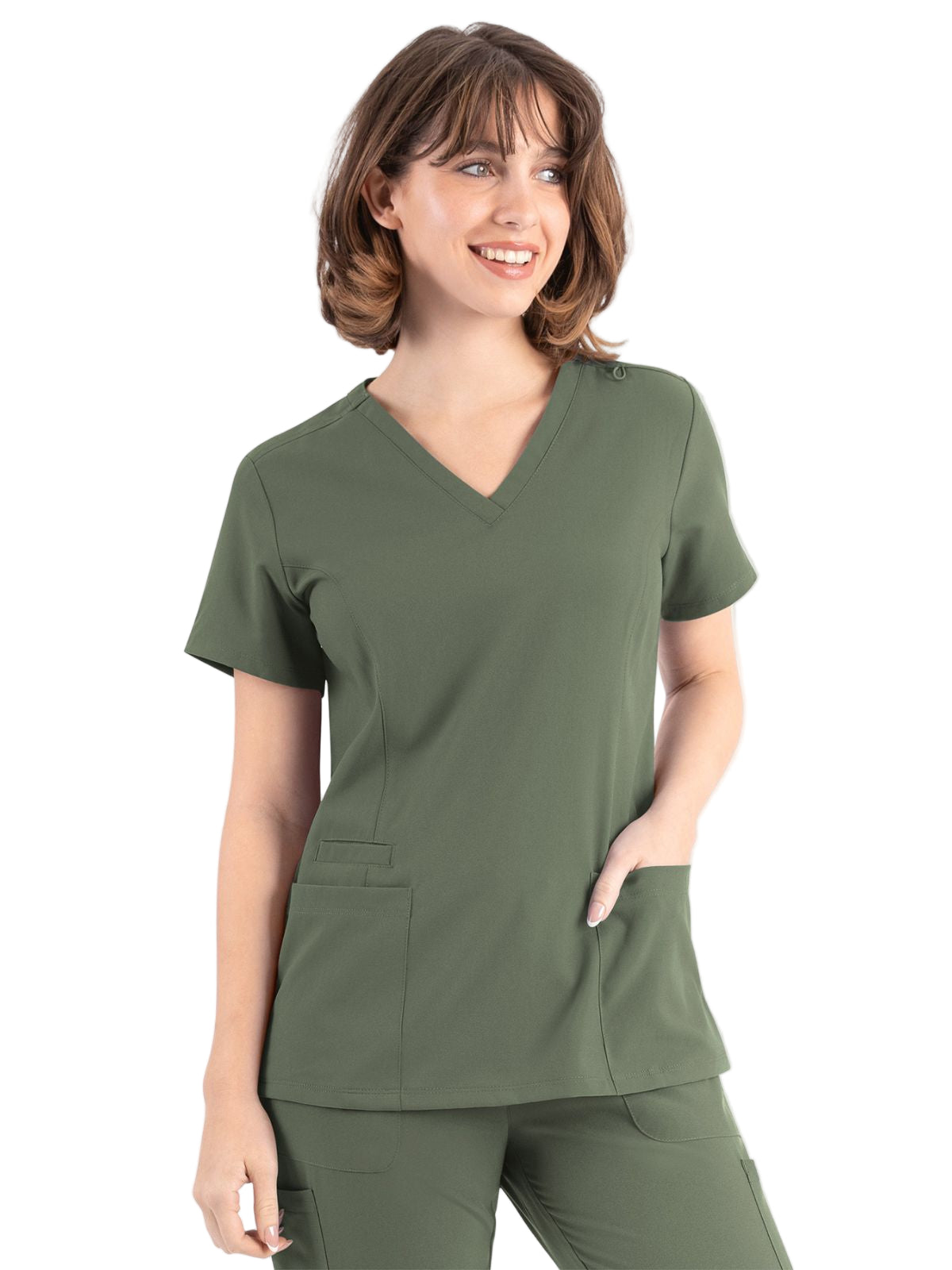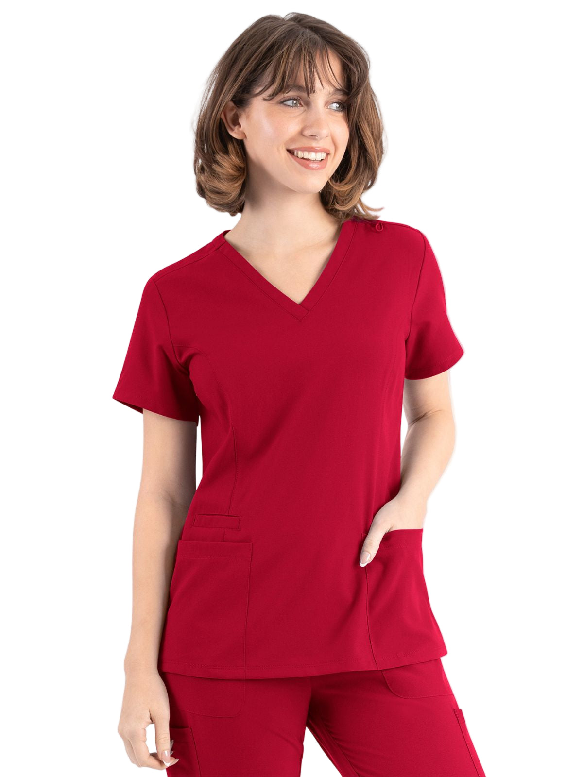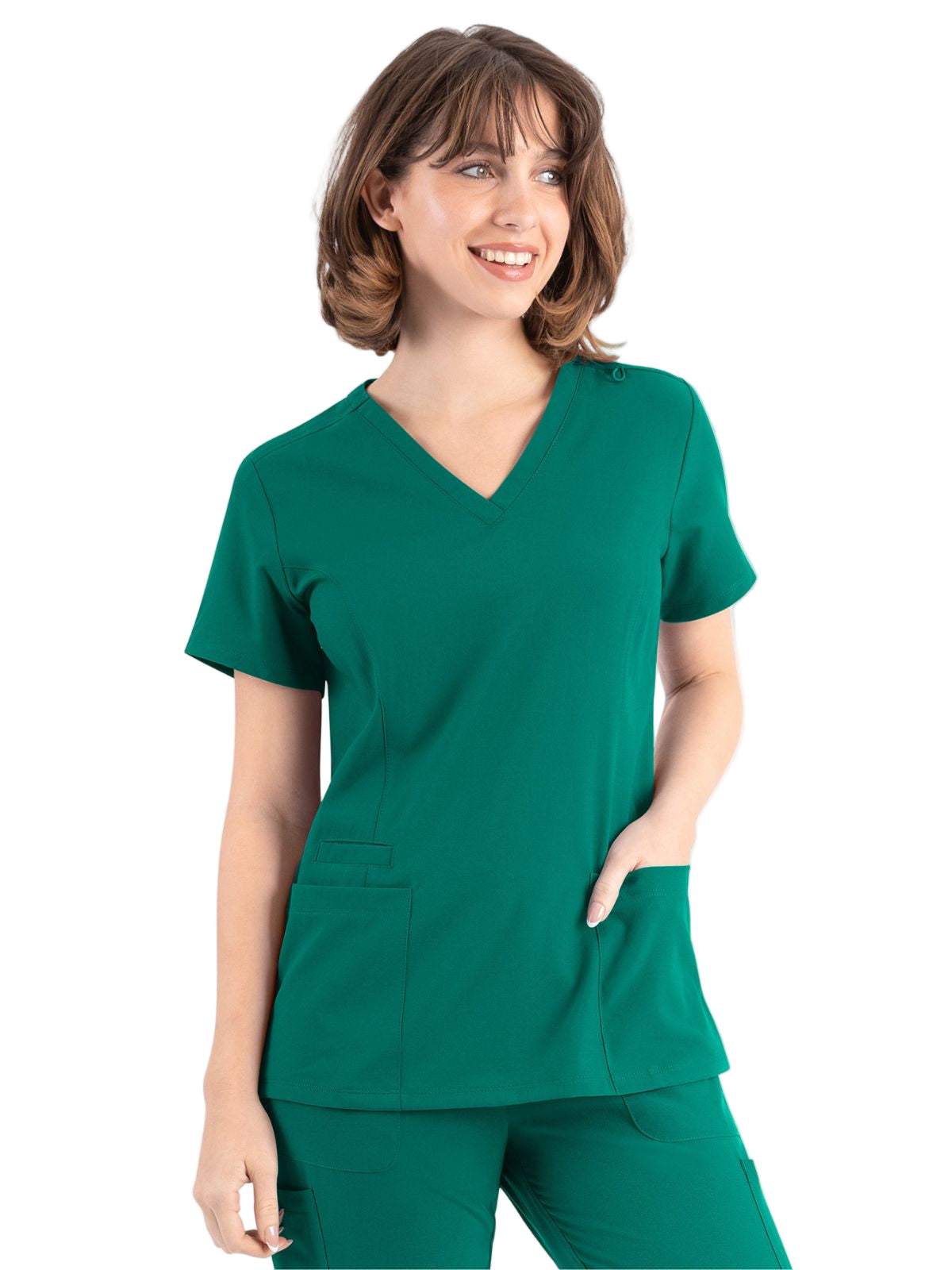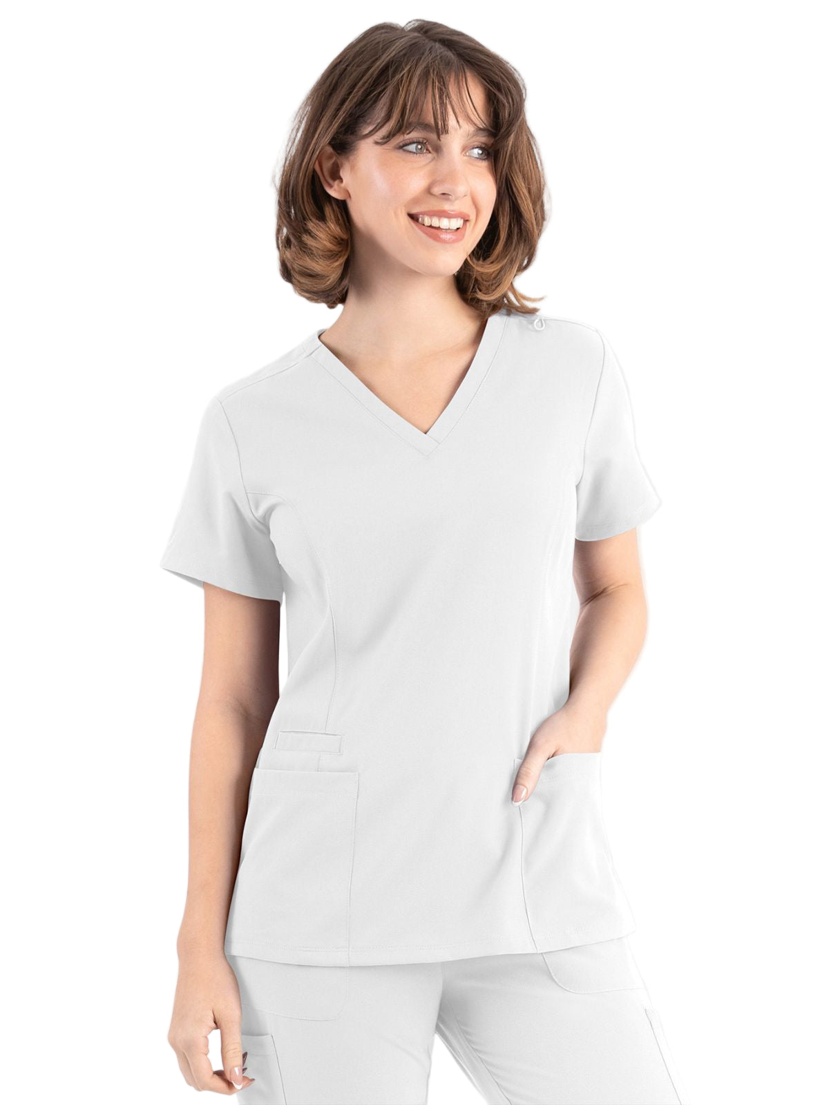 * Front princess seams and back darts for added style and comfort