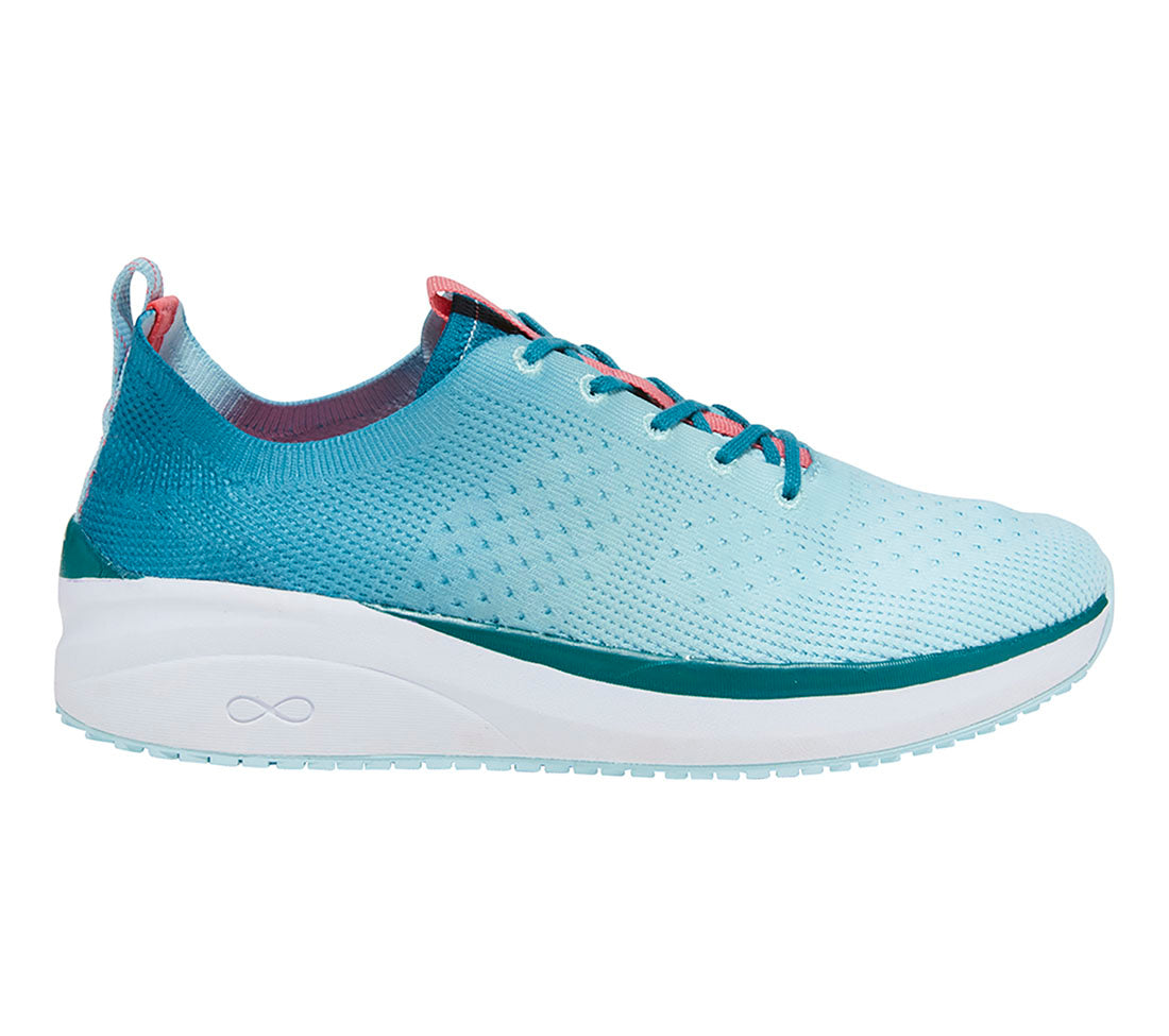 The all-new Everon-Knit is our softest, most shock absorbent shoe ever. It s new AERON"! EVA midsole is thicker in the heel for cushioning where you need it, and its stretch-knit upper flexes and breathes for custom fit and comfort all day long. Plus, it comes in Medium and Wide widths in three styles.