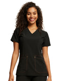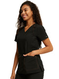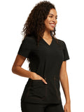 Innovative, modern, and inspired by athletic wear, the Riveting by Dickies Women's V-Neck Solid Scrub Top has you covered. Not only is this functional scrub top breathable and sweat wicking, it's built with Dickies' signature durability for long-lasting wear.