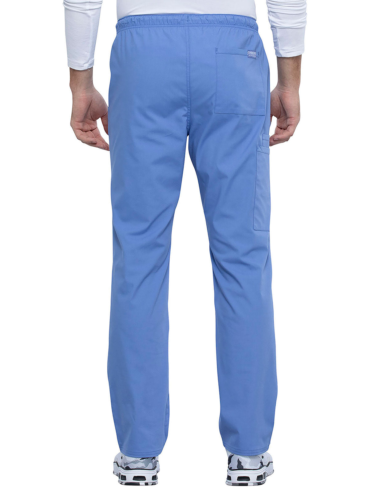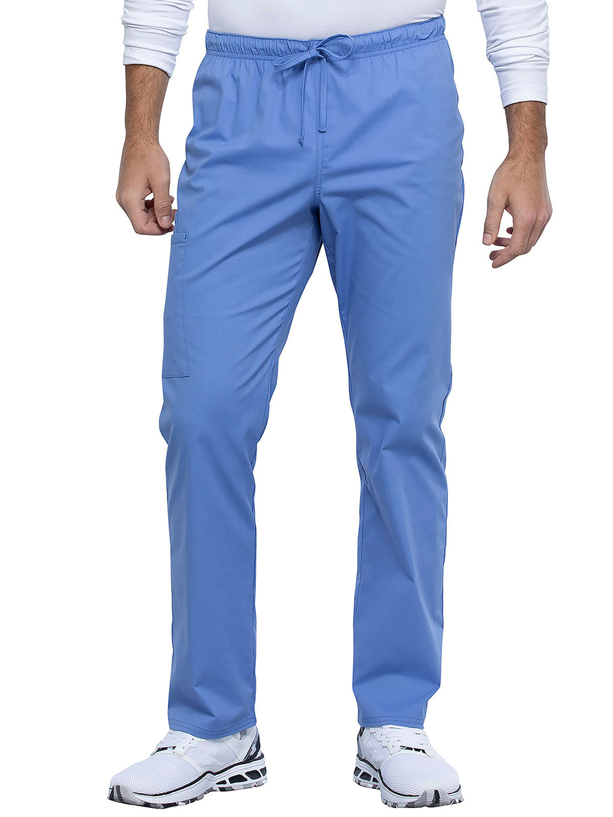 This Unisex mid rise pant features a functional drawstring and elastic encased around the waistband, three pockets, one cargo pocket, a cell phone pocket and one large back pocket. Unisex Modern fit. Inseam: 31", Leg Opening:16 1/2"