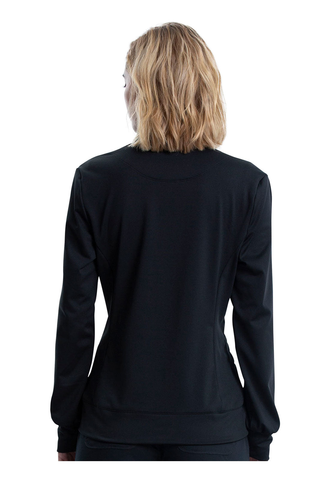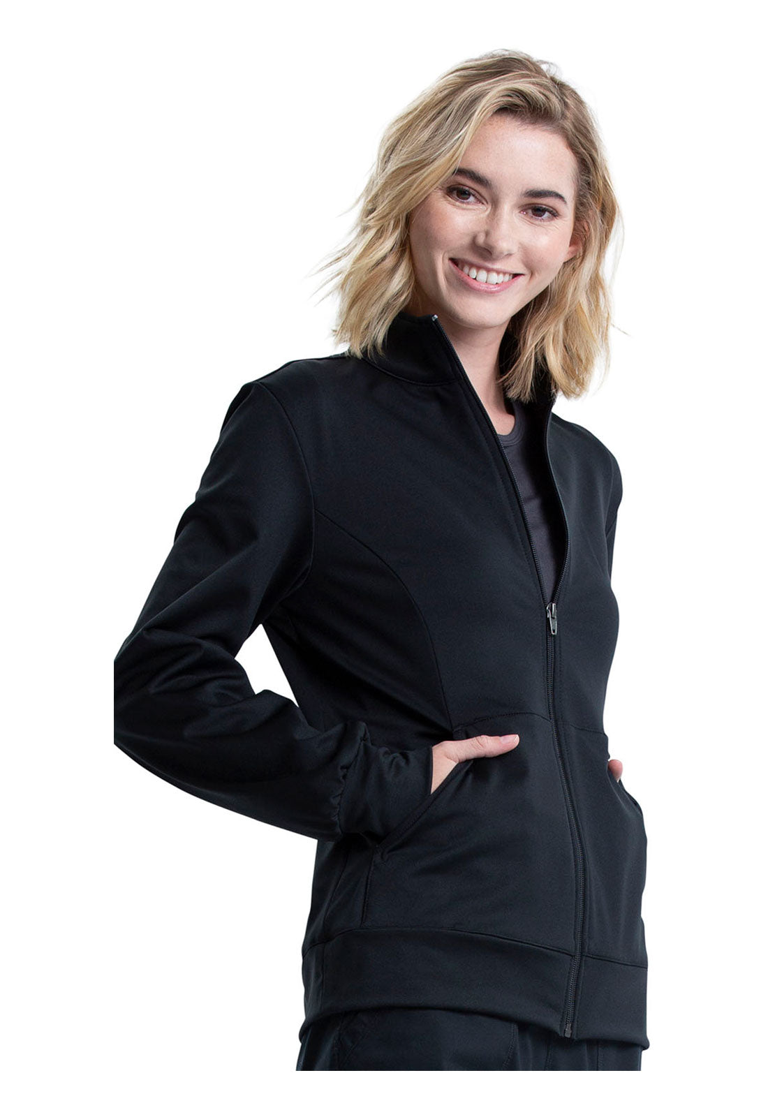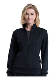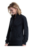 This warm and comfortable Modern Classic fit zip front knit layering jacket has stand-up collar for extra protection from the elements. Front and back princess seams for fit and shaping. The jacket also features three pockets: two front pockets and one hidden zipper pocket inside the wearer's right front pocket. Self cuffs and a banded hem complete the look. Center back length: 26"