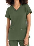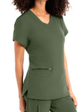 A Modern Fit v-neck top with a piecing detail neckline gives this top an elevated look. Features a single zipper pocket to keep your personal items secure and 2 welt pockets for easy access to grab anything you may need. Back side knit panels provide extra comfort and movement.
