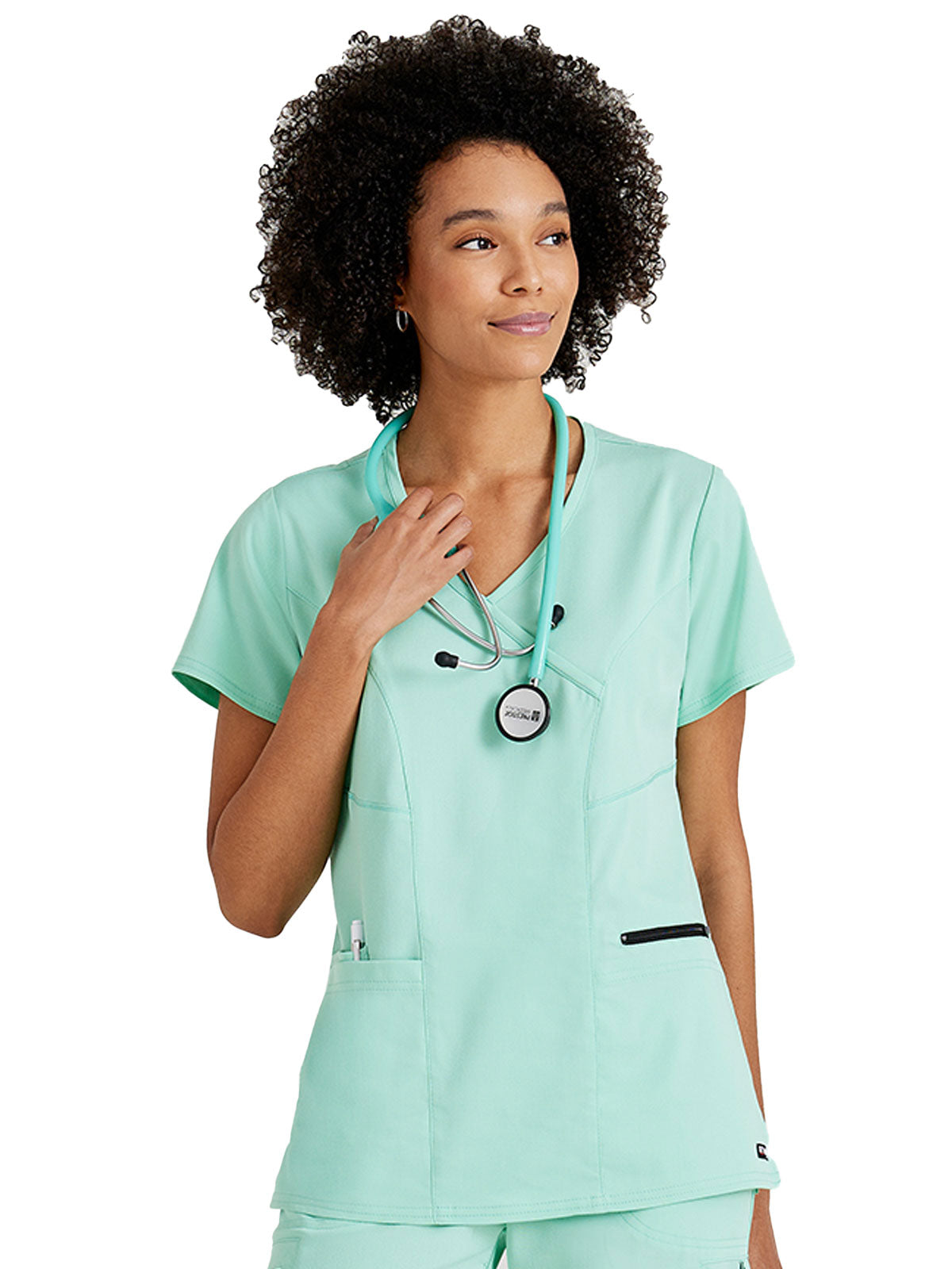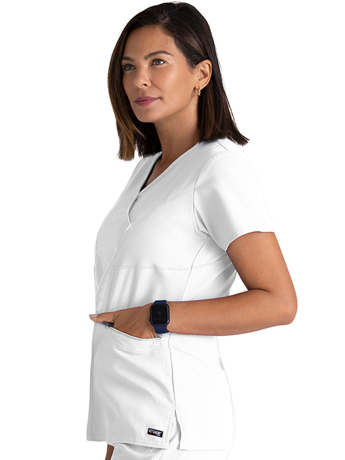 When you're running from one patient to the next, you want scrubs that let you move freely and help you stay dry. This women's Grey's Anatomy + SpandexStretch scrub top is made of soft, sweat-wicking fabric with plenty of stretch. Princess seams give it a flattering tailored fit.