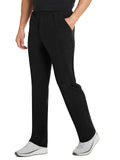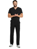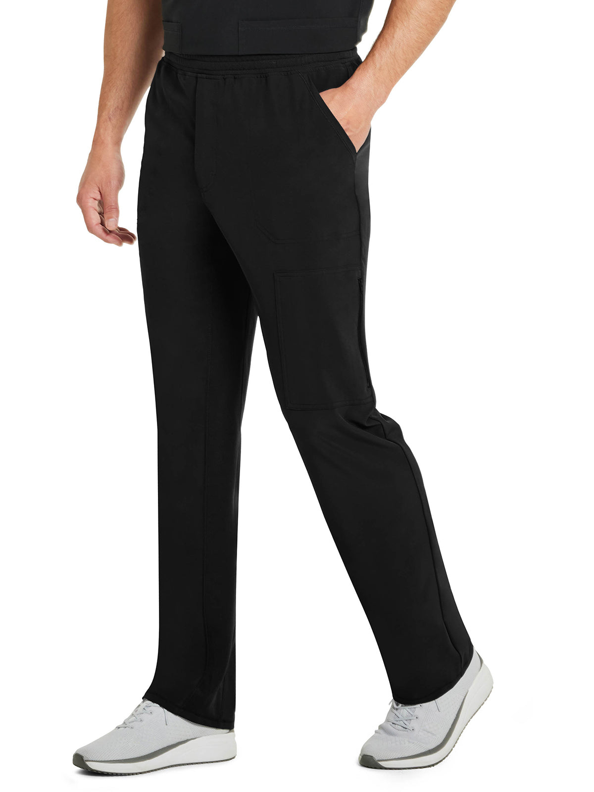 This men's pant features an elastic-reinforced pull-on waistband covered in tonal mesh for security and an inside drawstring for adjustability. Zipper fly. There are five pockets to hold medical supplies: two front slant pockets, two cargo pockets, and one back patch pocket. Right cargo pocket has pen slot and left cargo pocket has zipper closure for secure storage. Tonal mesh panels along inseam for breathability. Natural rise. Men's Contemporary fit. Straight leg, 16" opening. Inseam: 32"