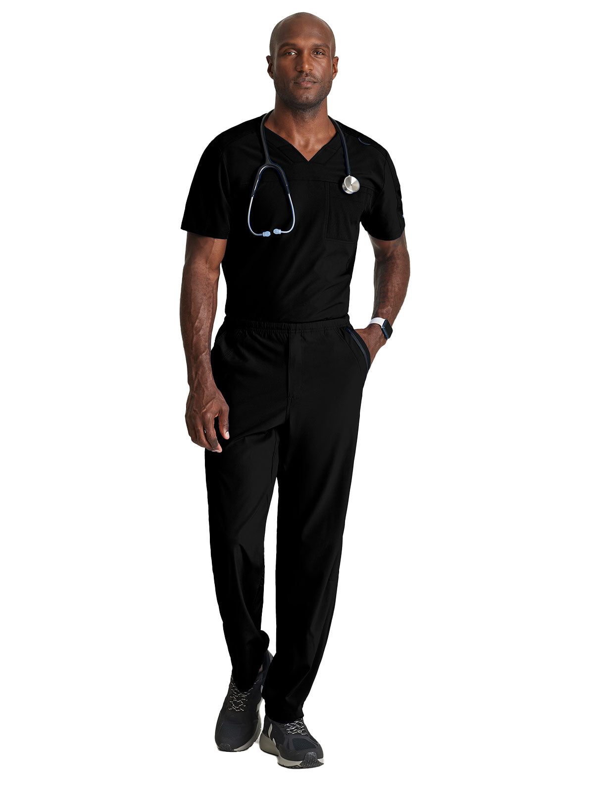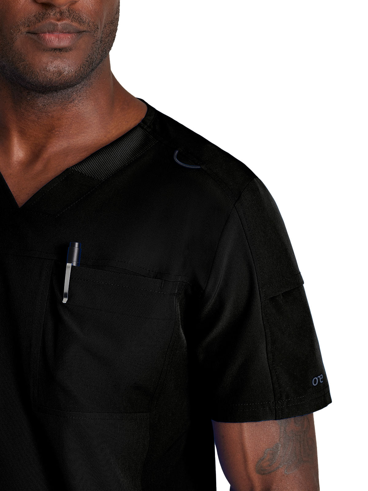 The Healing Hands x Dr. Kwane Men's Victor top features a quarter zip at the center front neck for style plus easy on and off. This Men's scrub top includes a mandarin collar and racer-style sleeve panels with dyed-to-match knit...