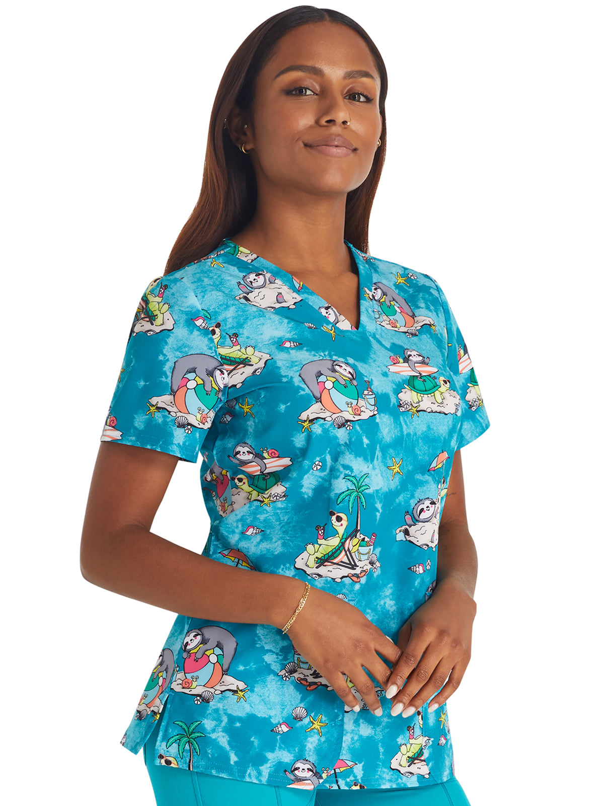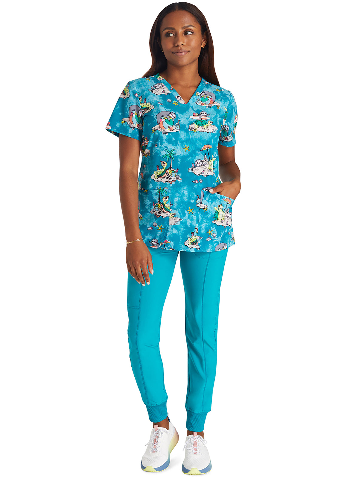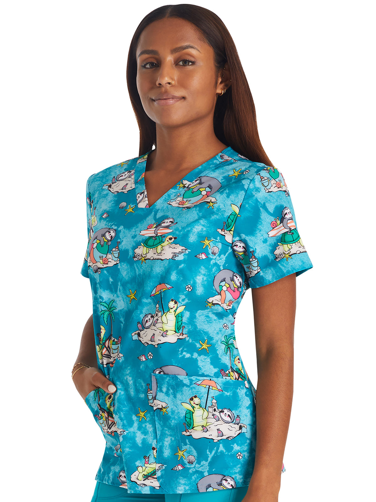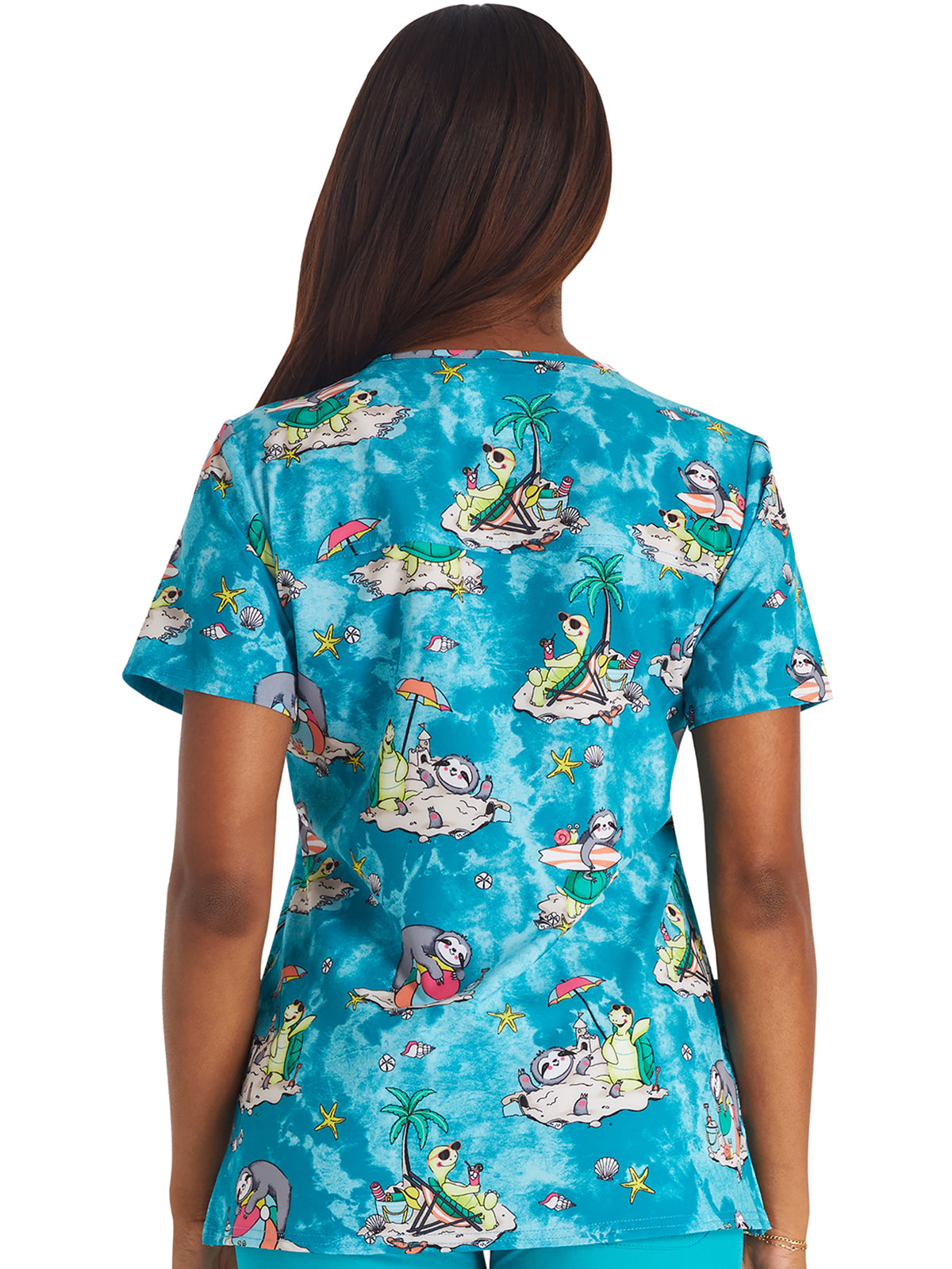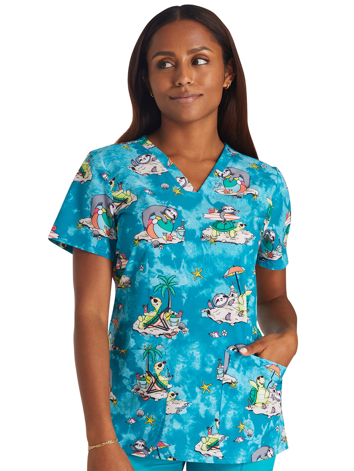 Start your day on a pawsitive note when you wear the Zoe and Chloe Women's Diamond Neck Print Scrub Top. It's sure to be a favorite in pediatric or veterinary settings. Diamond-shaped neckline Short sleeves 2 roomy front pockets Straight...