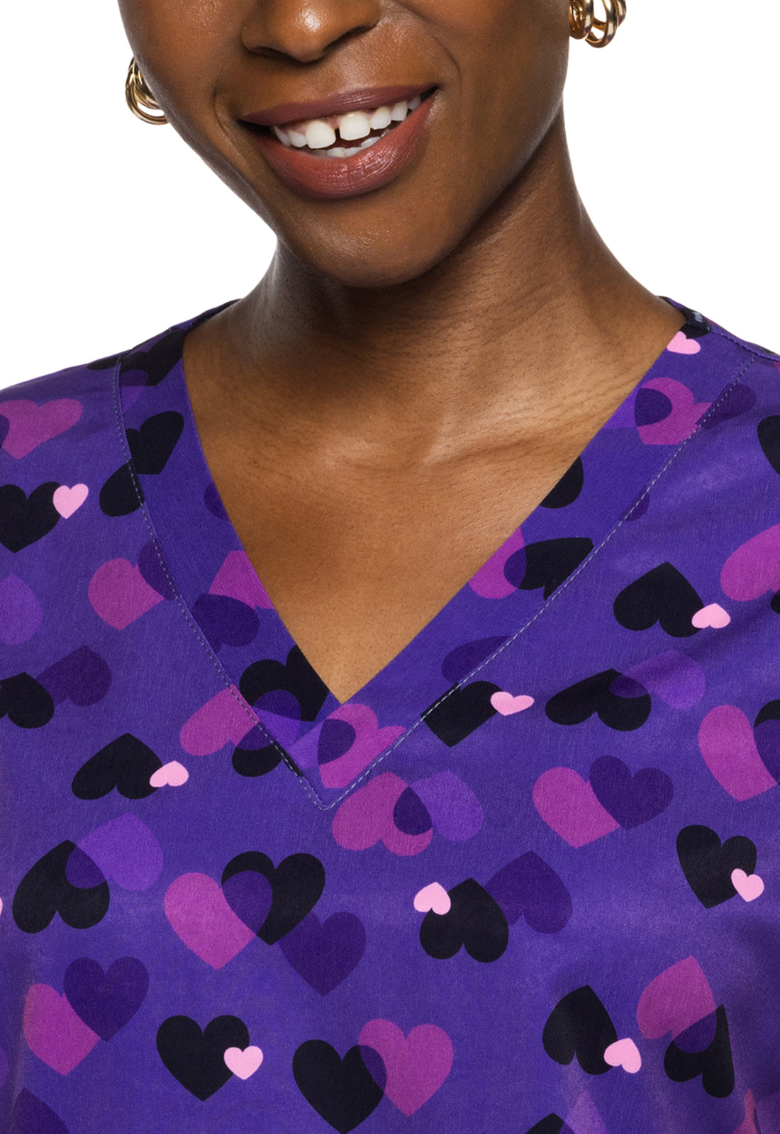 Start your day on a pawsitive note when you wear the Zoe and Chloe Women's Diamond Neck Print Scrub Top. It's sure to be a favorite in pediatric or veterinary settings. Diamond-shaped neckline Short sleeves 2 roomy front pockets Straight...