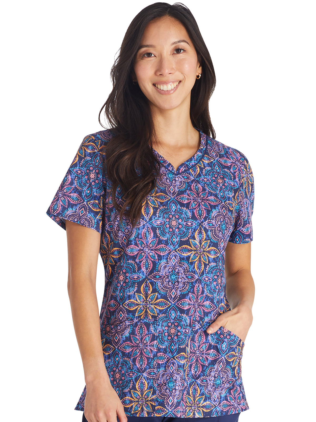 Cherokee - Women's Brushing Blooms V-Neck Top
