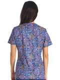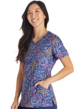 Celebrate fall's splendor in style in the Zoe and Chloe Women's Notch Neck Print Scrub Top. Two front pockets finish the look of this festive top. Notched neckline Short sleeves 2 roomy front pockets Straight hem Side vents Blue and...