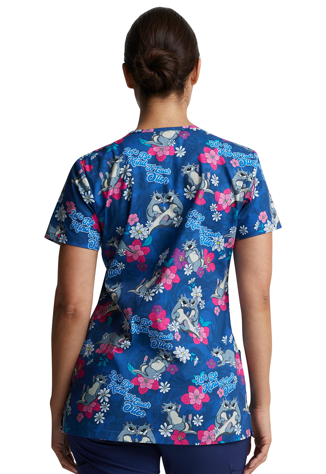 Celebrate fall's splendor in style in the Zoe and Chloe Women's Notch Neck Print Scrub Top. Two front pockets finish the look of this festive top. Notched neckline Short sleeves 2 roomy front pockets Straight hem Side vents Blue and...