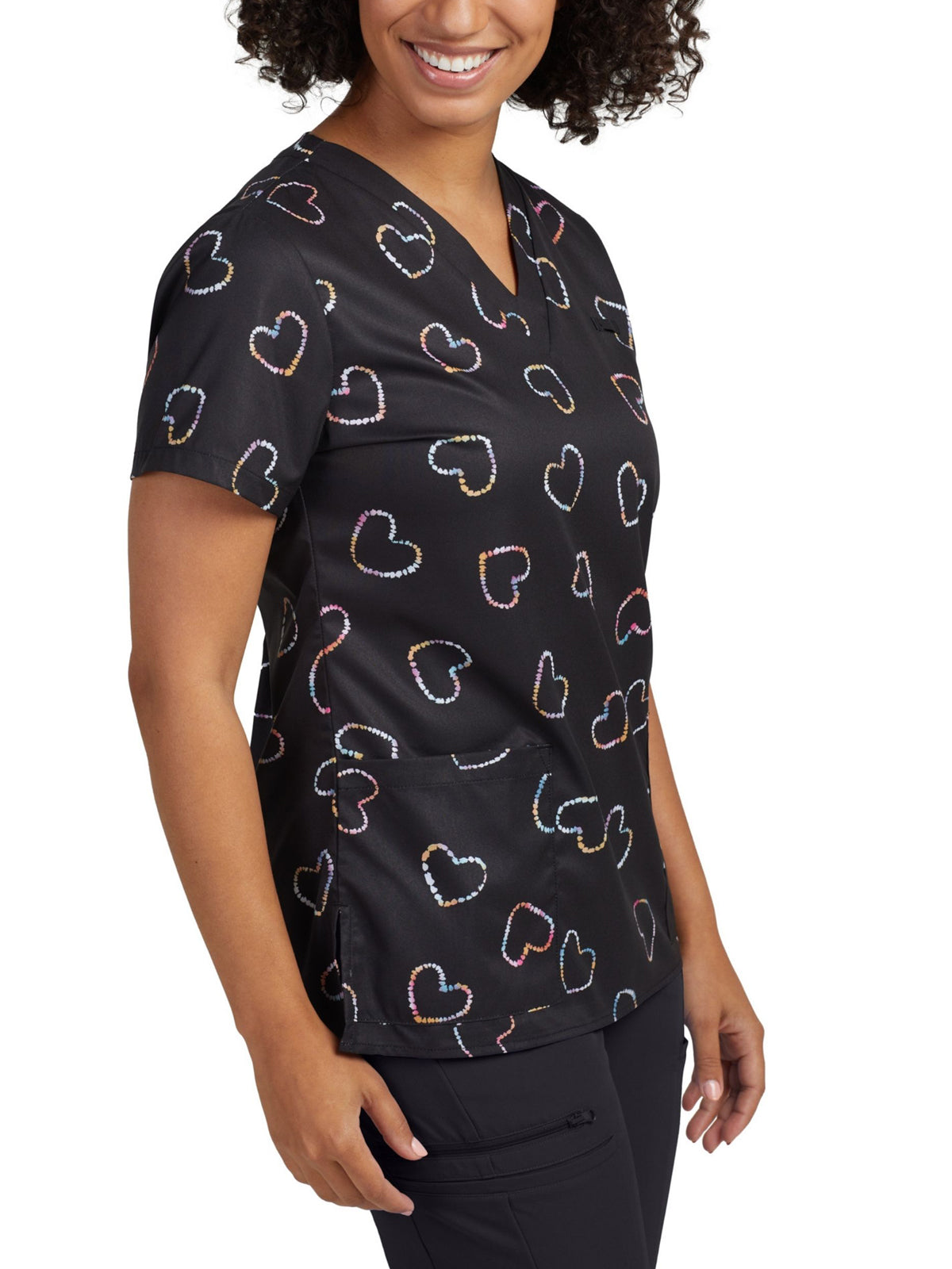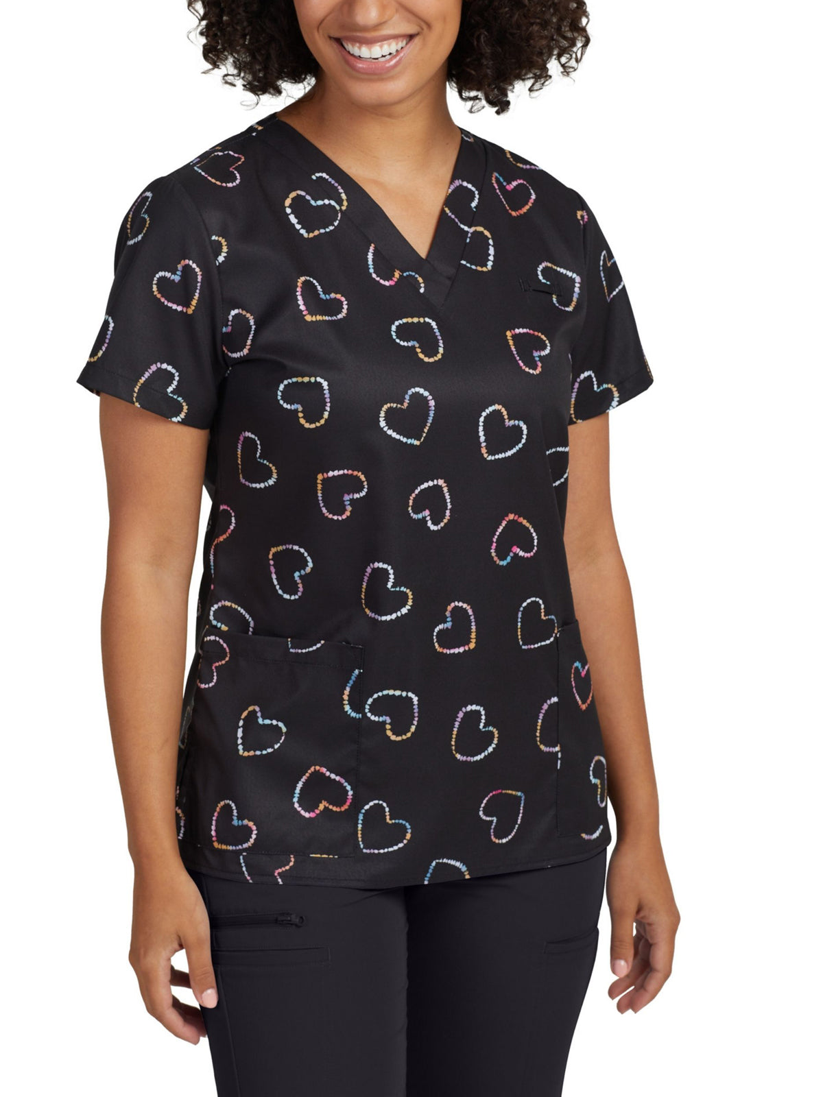 Our women's 3-pocket V-neck scrub top adds both comfort and fun to your work shift with breathable, 2-way stretch for mobility and a silky soft touch for all-day comfort. Created with a V-neck, side vents for extra ease of movement, and a contemporary Slim Fit that's contoured to conform to your body and complement your shape.