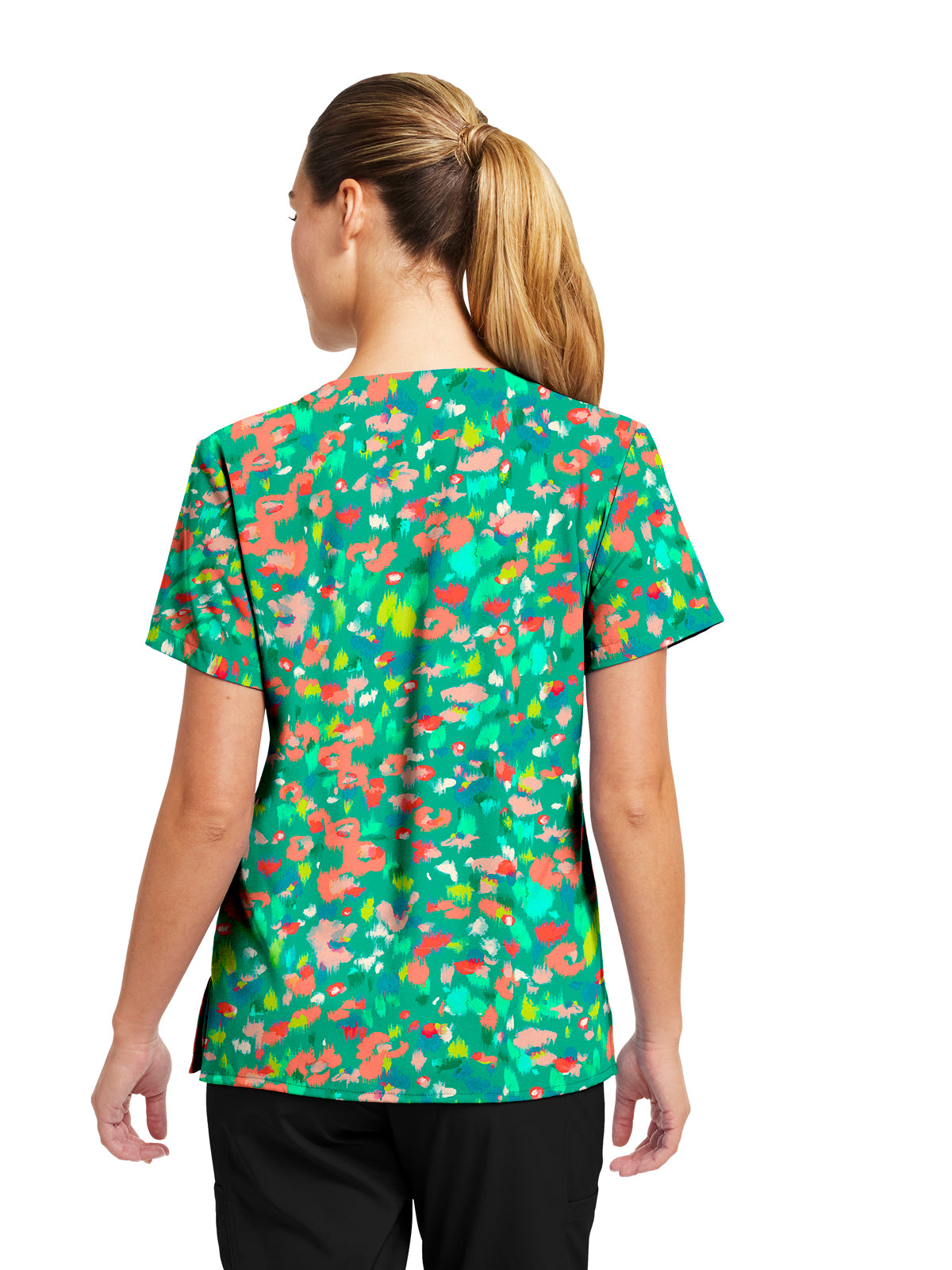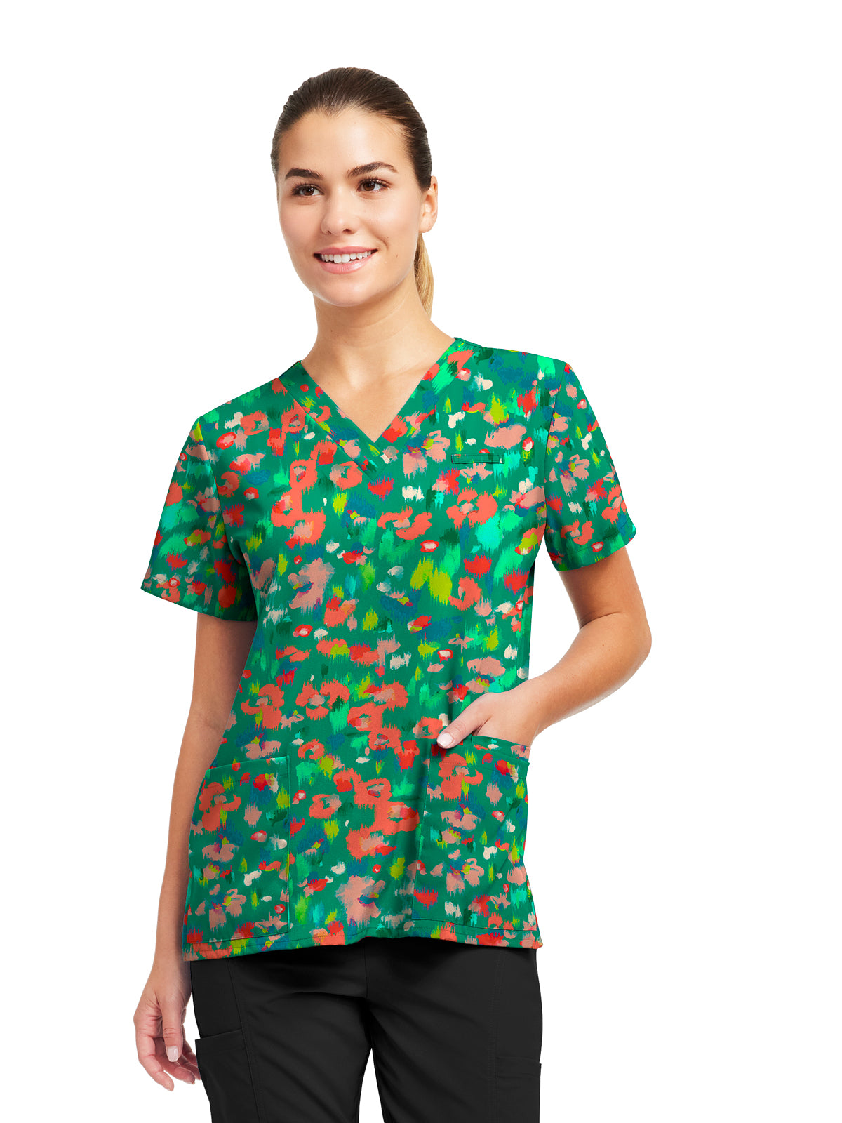 Our women's 3-pocket V-neck scrub top adds both comfort and fun to your work shift with breathable, 2-way stretch for mobility and a silky soft touch for all-day comfort. Created with a V-neck, side vents for extra ease of movement, and a contemporary Slim Fit that's contoured to conform to your body and complement your shape.