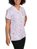 Women's Notch Neck Print Scrub Top