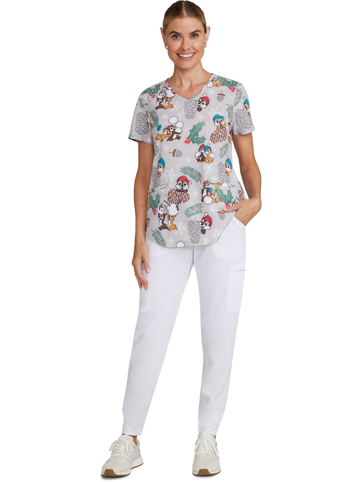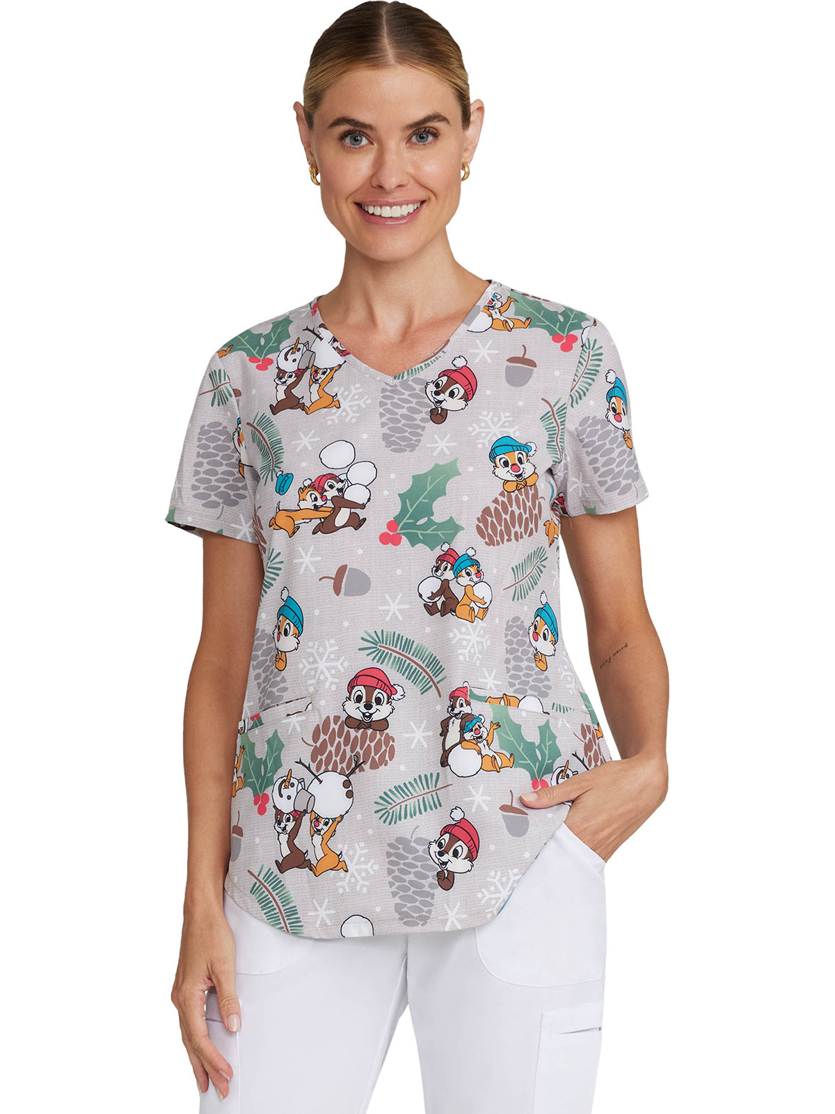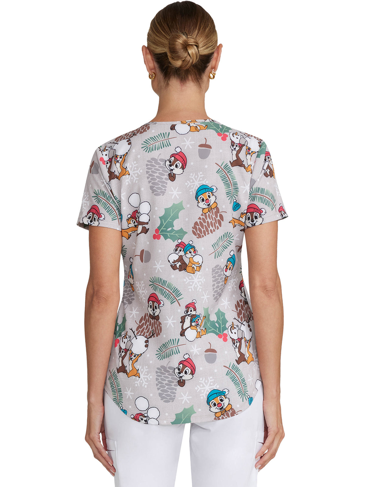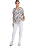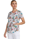 Women's Notch Neck Print Scrub Top