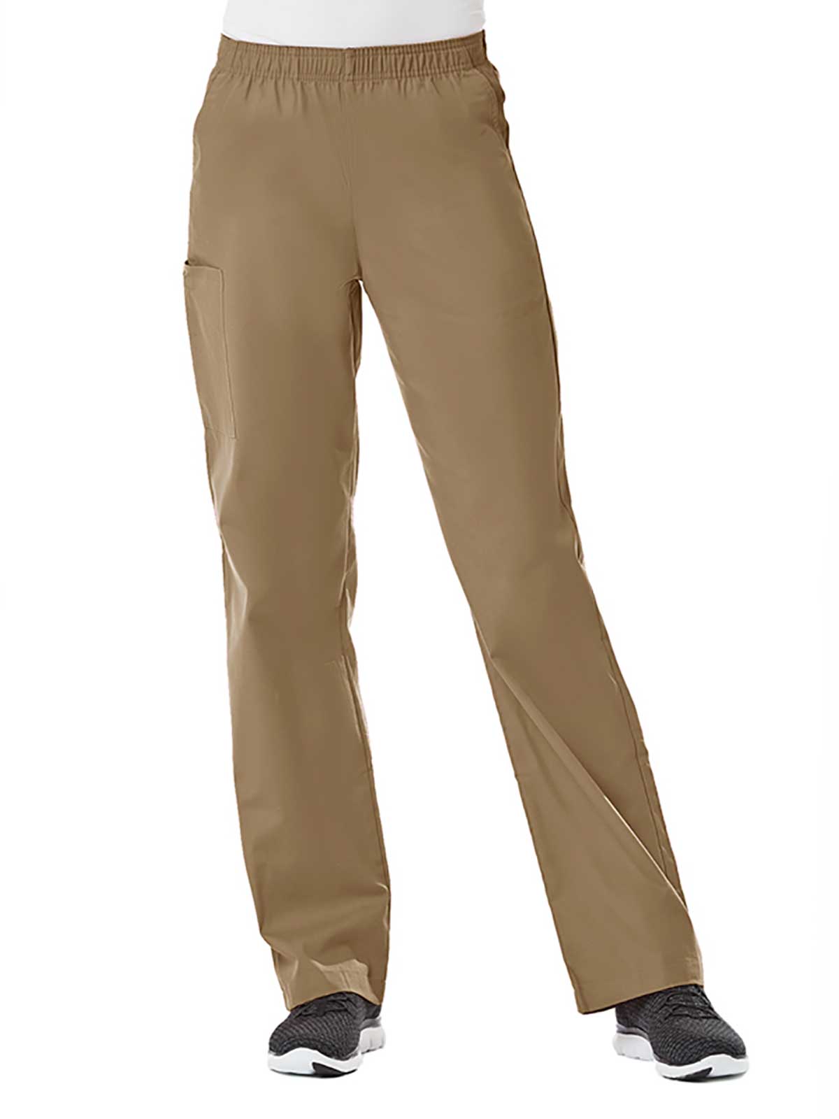 "*Ladies straight leg with full elastic waistband *Two front slash pockets *One cargo pocket and inner cell pocket *Side vents"