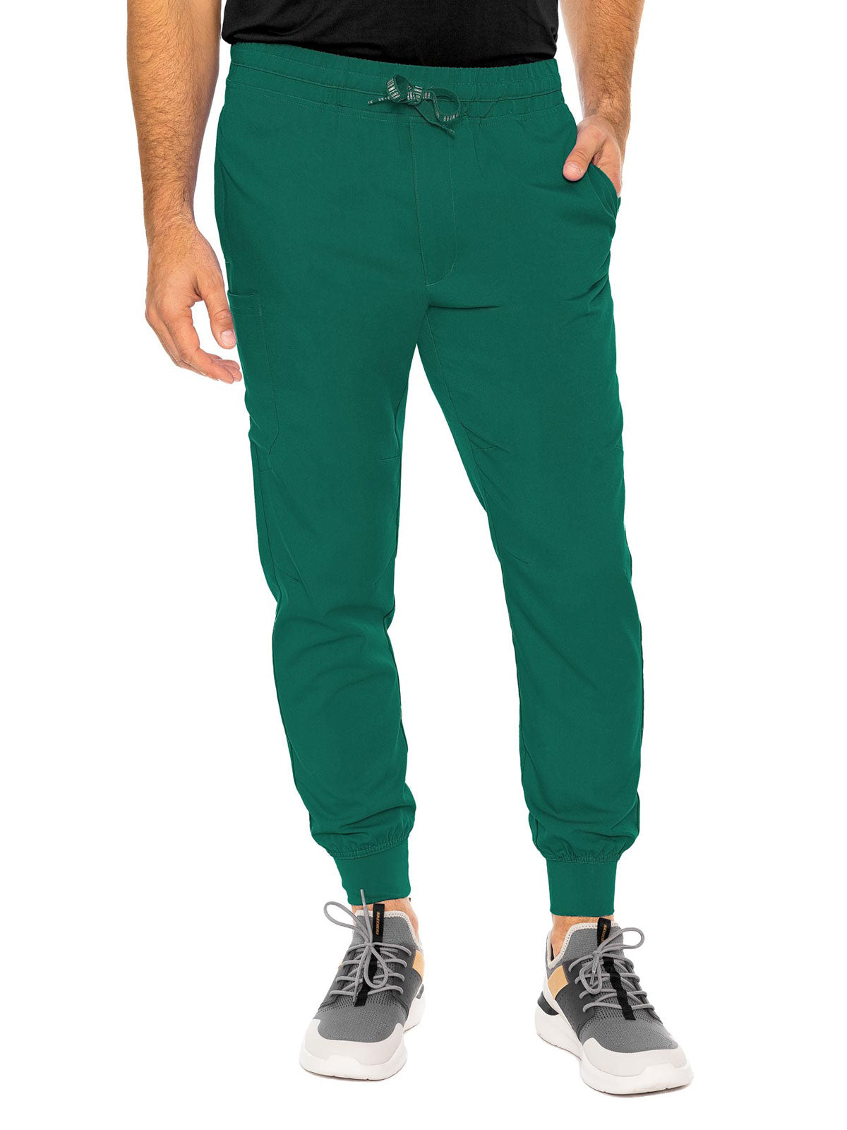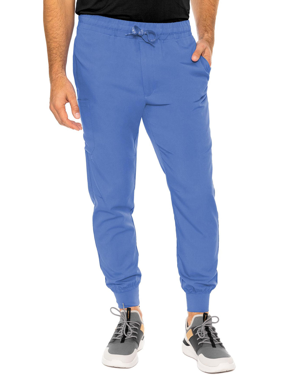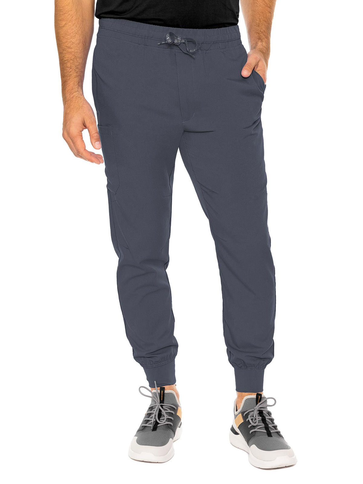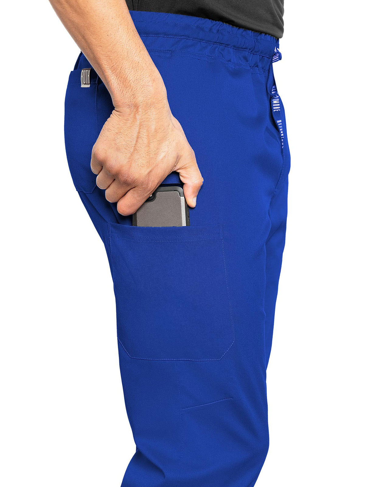 Comfort comes first with the form-fitting RothWear by Med Couture Men's Bowen Jogger Scrub Pant. A tapered jogger leg is complete with knitted cuffs and an adjustable drawcord.