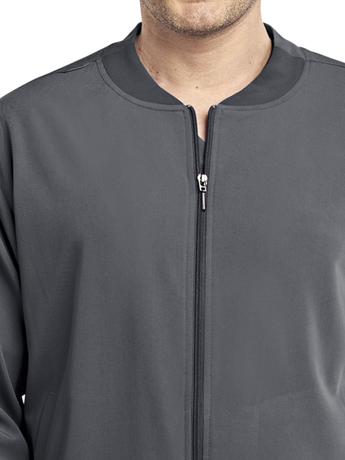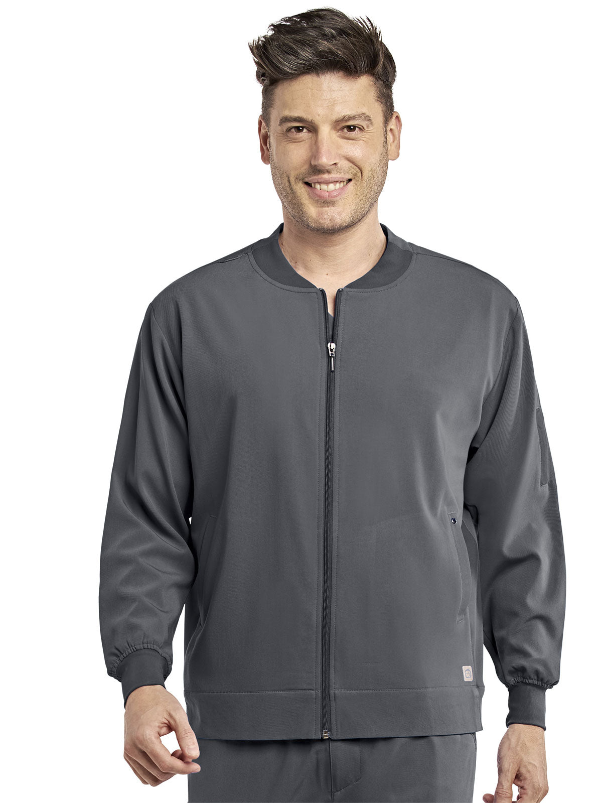 WonderWink Aero is designed with versatility in mind. The Men's Zip Bomber style scrub jacket is the perfect addition to your layering options. The rib knit cuffs, side panels, and accents on the crew neck offer comfort, extra mobility, and style. The side entry pockets are perfectly placed and angled to keep things handy.