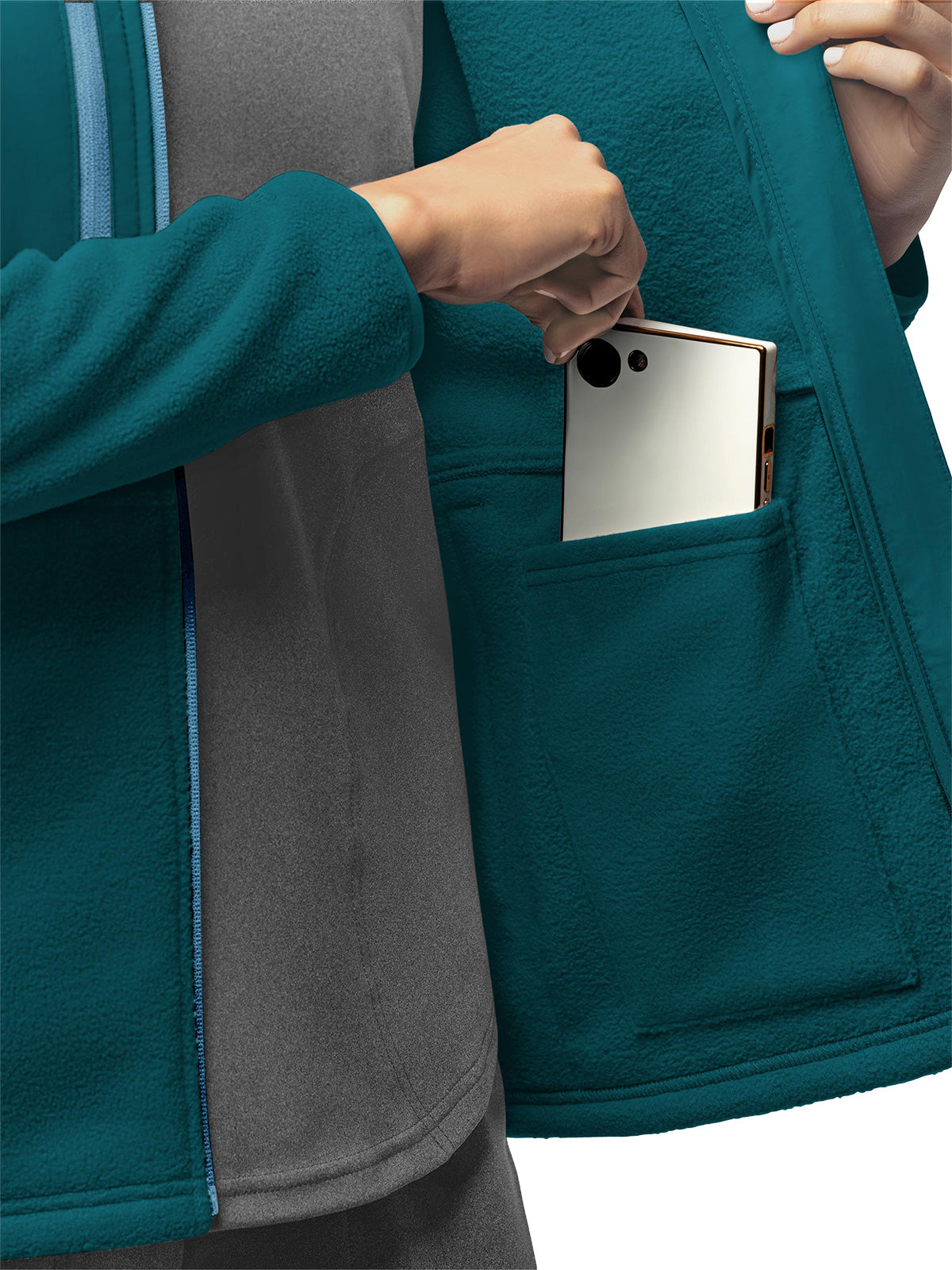 The Slate by WonderWink Women's Micro Fleece Zip Pocket Jacket is not your average fleece jacket. It's designed with secure pockets and slots to stash your keys, pens and cards, an inner pocket for your phone, and a badge loop,...