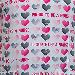This adjustable print scrubs hat features snap tabs by ears to comfortably hold a protective face mask in place.