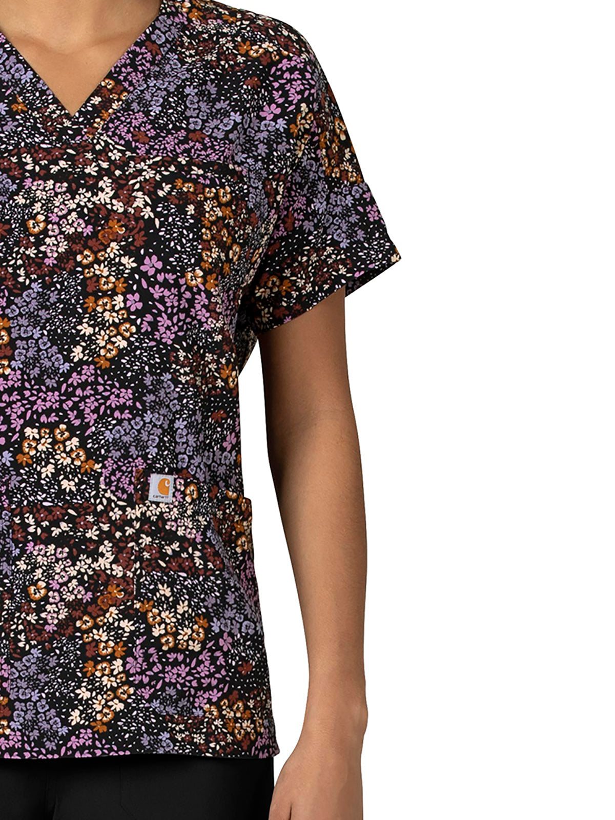Cherokee Core Stretch scrubs A Modern Classic fit cherokee core stretch scrub V-neck top features two patch pockets (the right with an interior pocket, the left with a pen slot and hidden instrument loop), bungee ID badge loop at the...