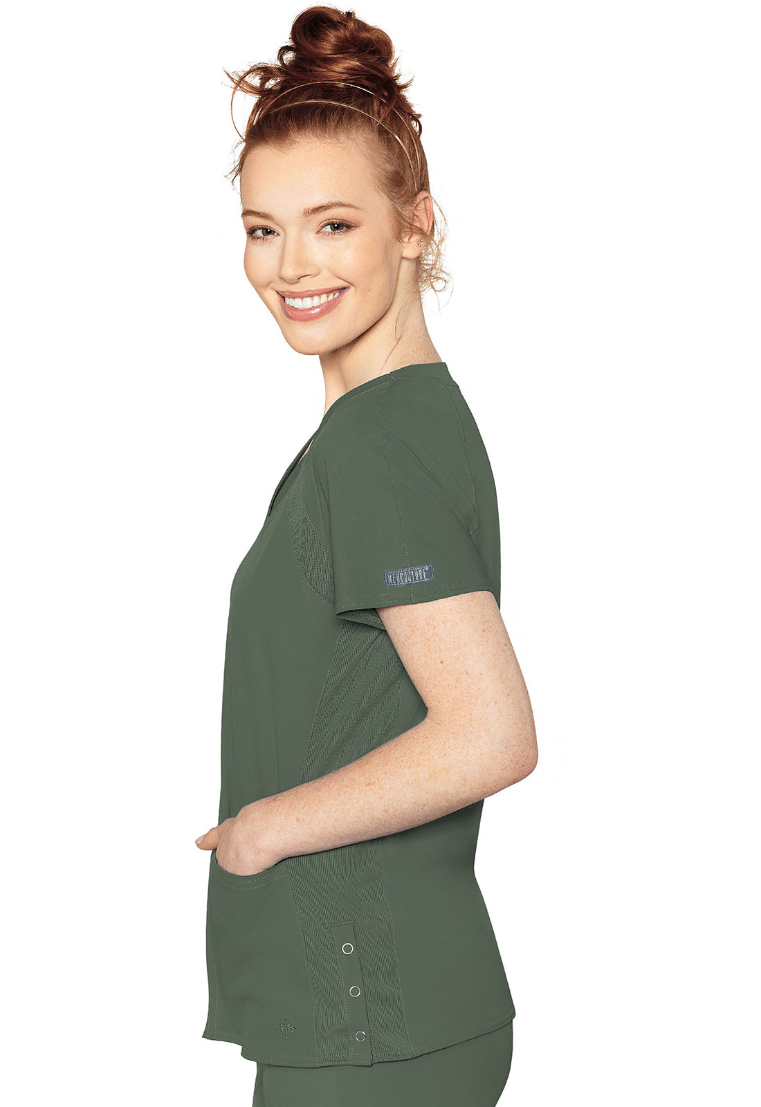 Update your look with the Peaches by Med Couture Women's Raglan Solid Scrub Top. The mesmerizing fabric and unique functionality create a contemporary, effortless look.