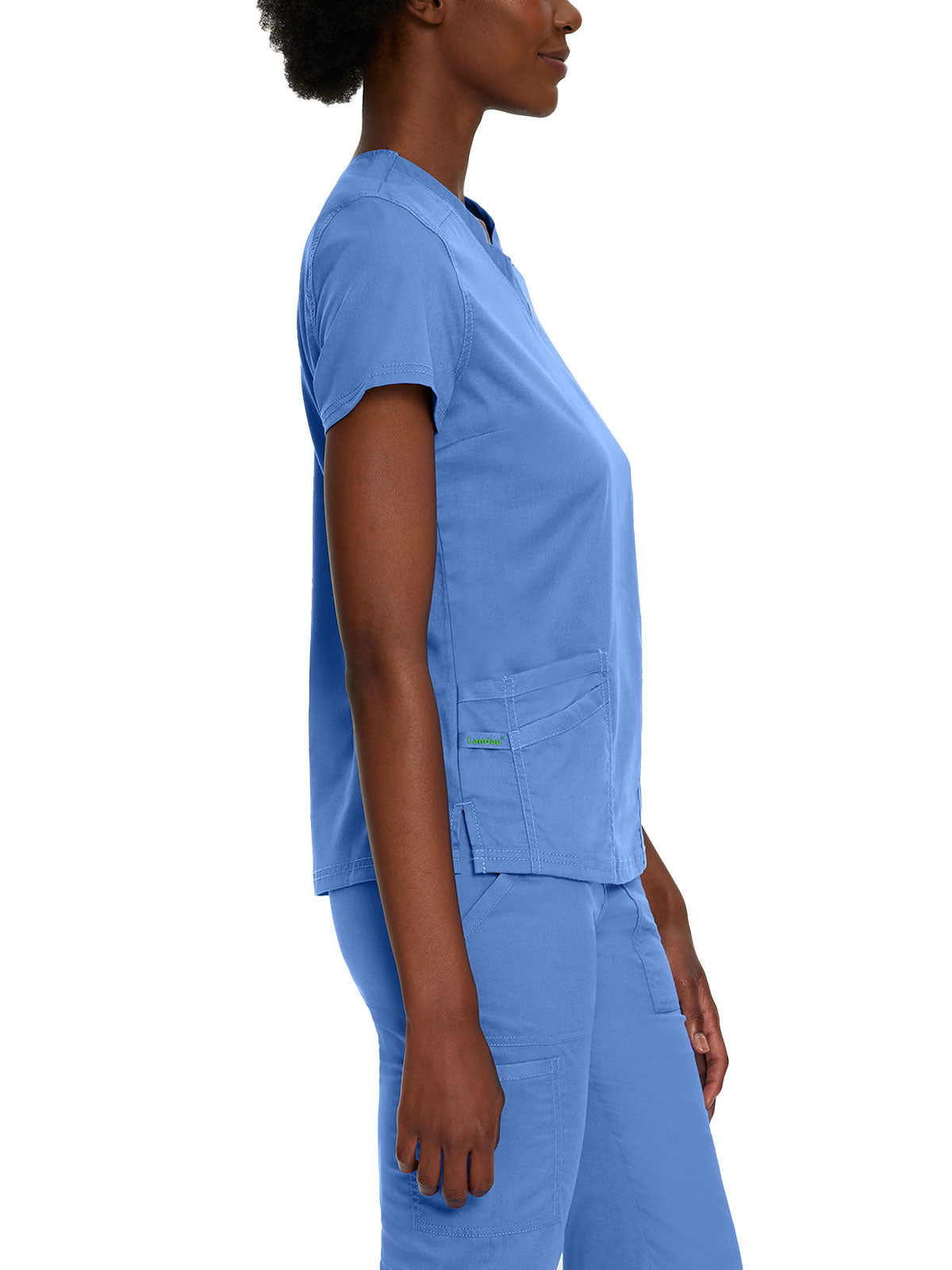 Originals - Women's Mock Wrap Knit Panel Solid Scrub Top