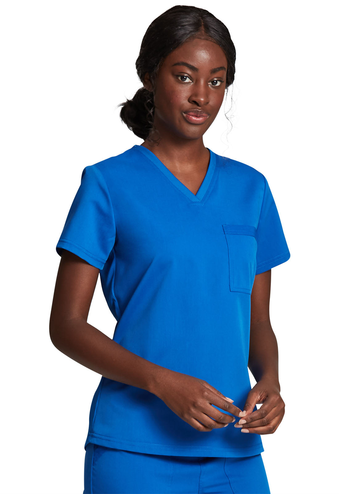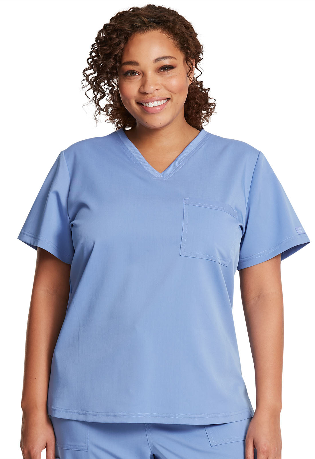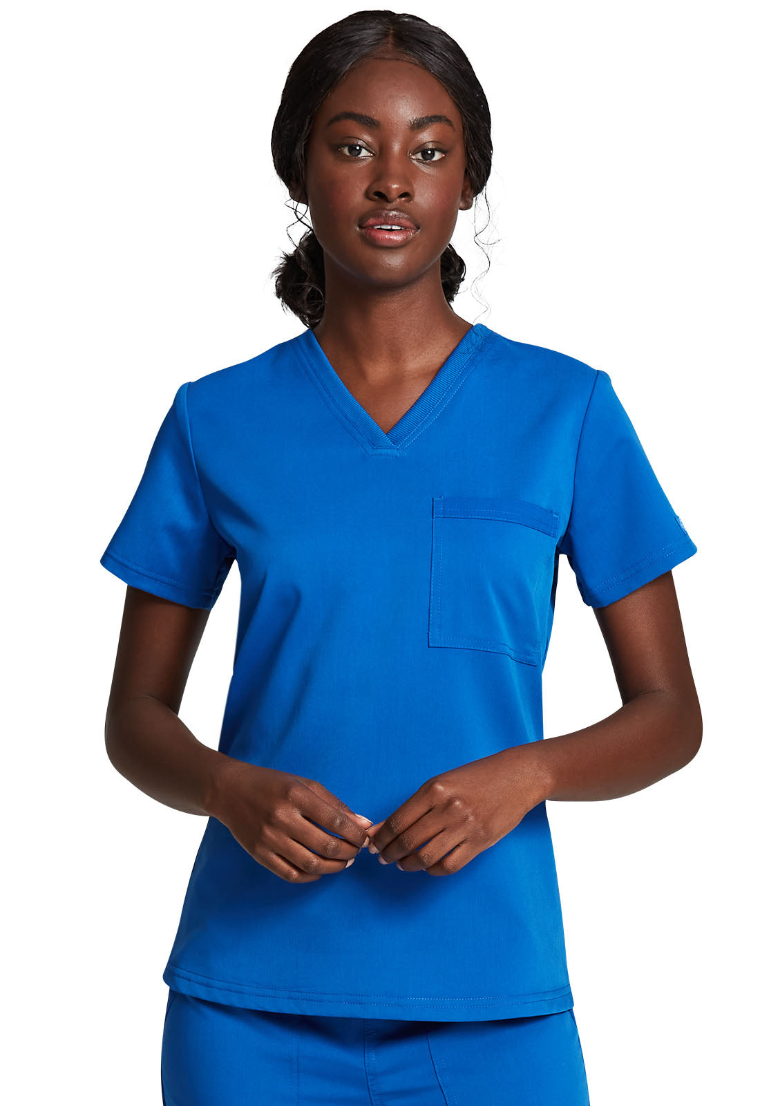 Cherokee Core Stretch scrubs A Modern Classic fit cherokee core stretch scrub V-neck top features two patch pockets (the right with an interior pocket, the left with a pen slot and hidden instrument loop), bungee ID badge loop at the...