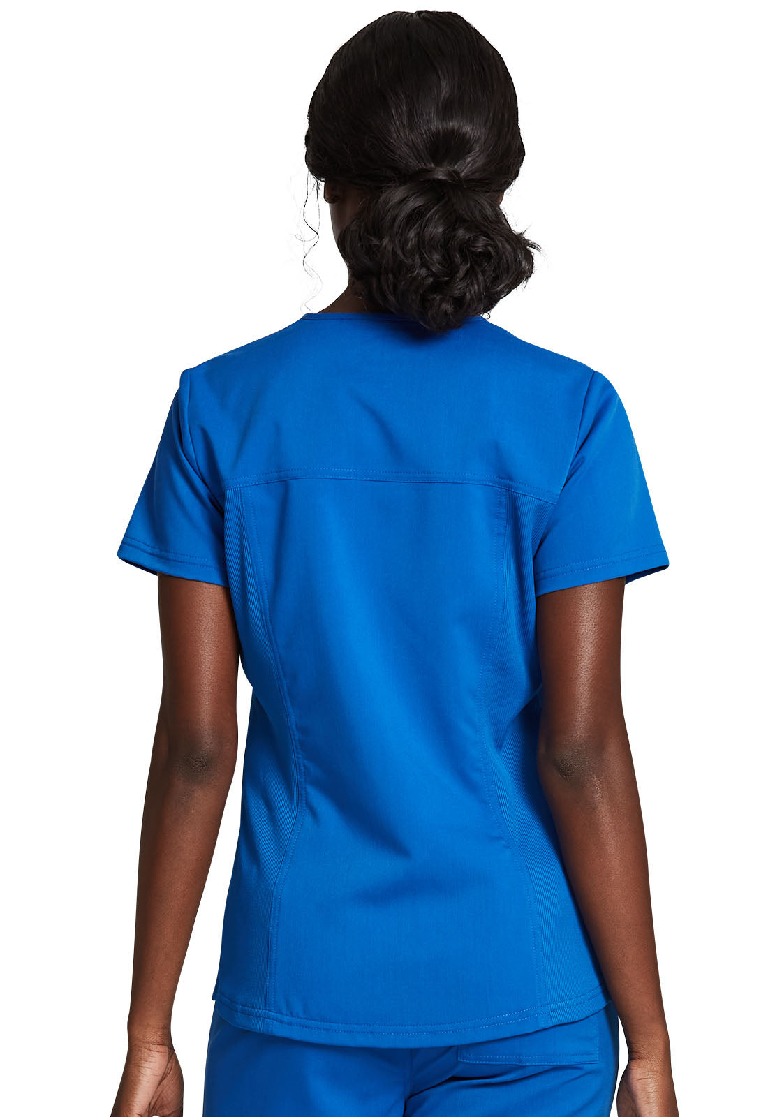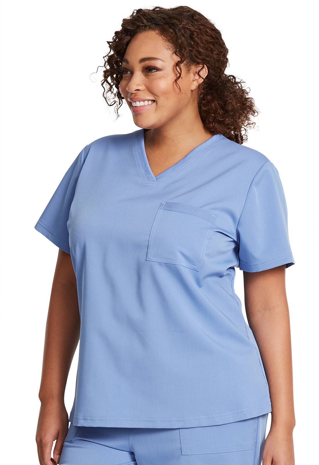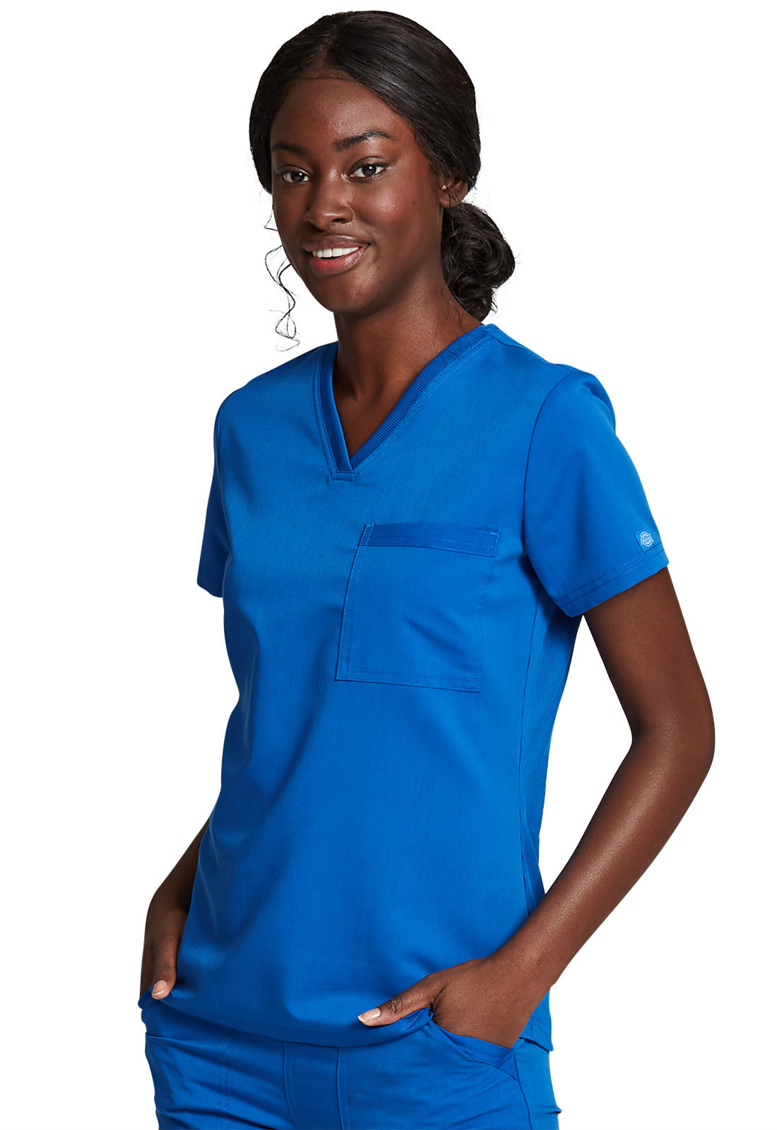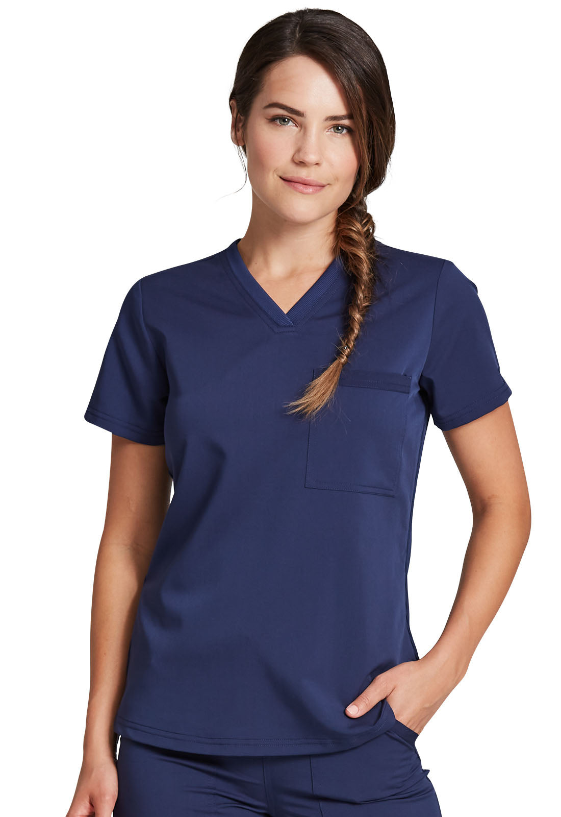 Cherokee Core Stretch scrubs A Modern Classic fit cherokee core stretch scrub V-neck top features two patch pockets (the right with an interior pocket, the left with a pen slot and hidden instrument loop), bungee ID badge loop at the...
