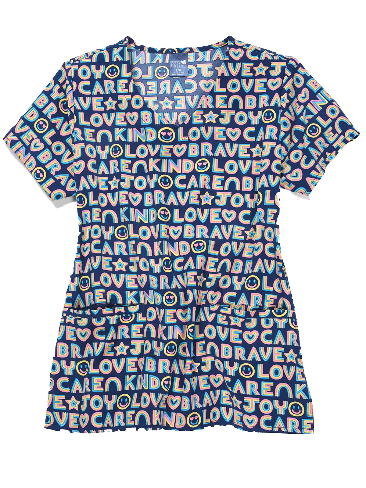 Start your shift with a smile and positive affirmations in the Zoe And Chloe Women's V-Neck Print Scrub Top. Elevate your everyday uniform with this stretchy, functional scrub top that says it all.