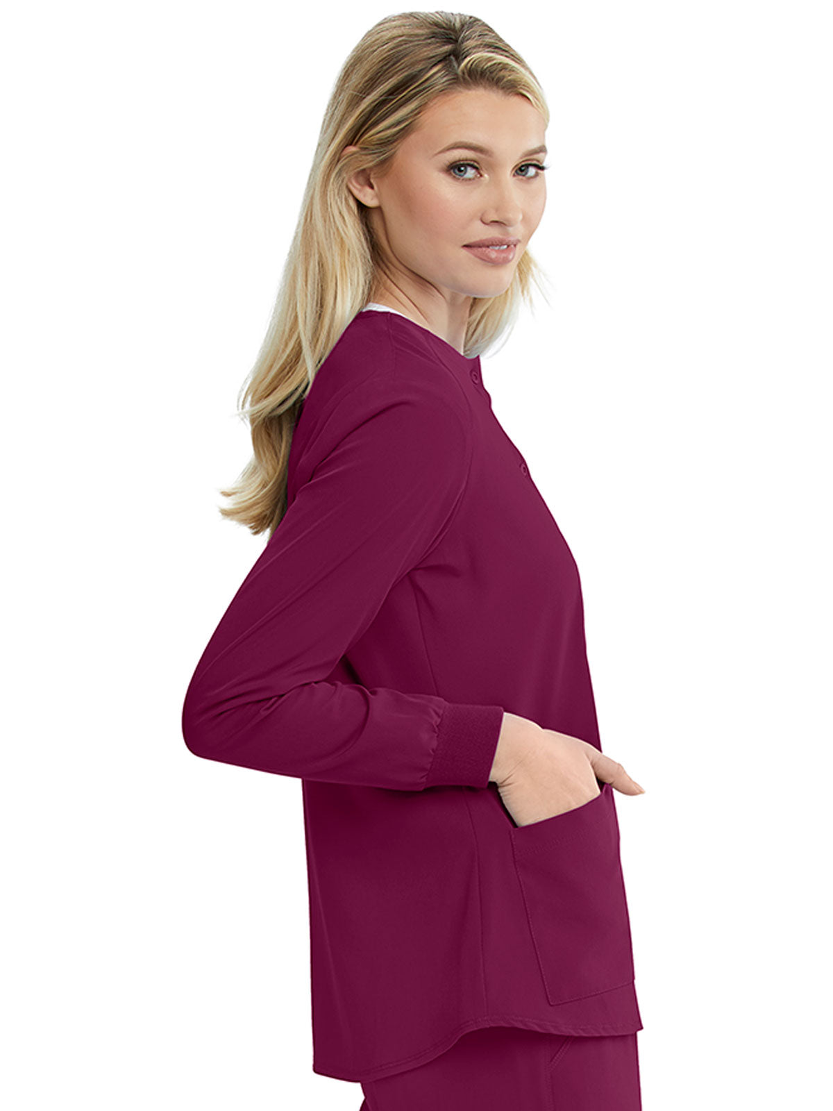 Part of an entire set of easy-to-layer separates, this scrub top brings the “stretch factor” for ultimate comfort. With a spacious cargo pocket and bungee loop to secure your badge, it’s sure to be a staple in your rotation.