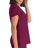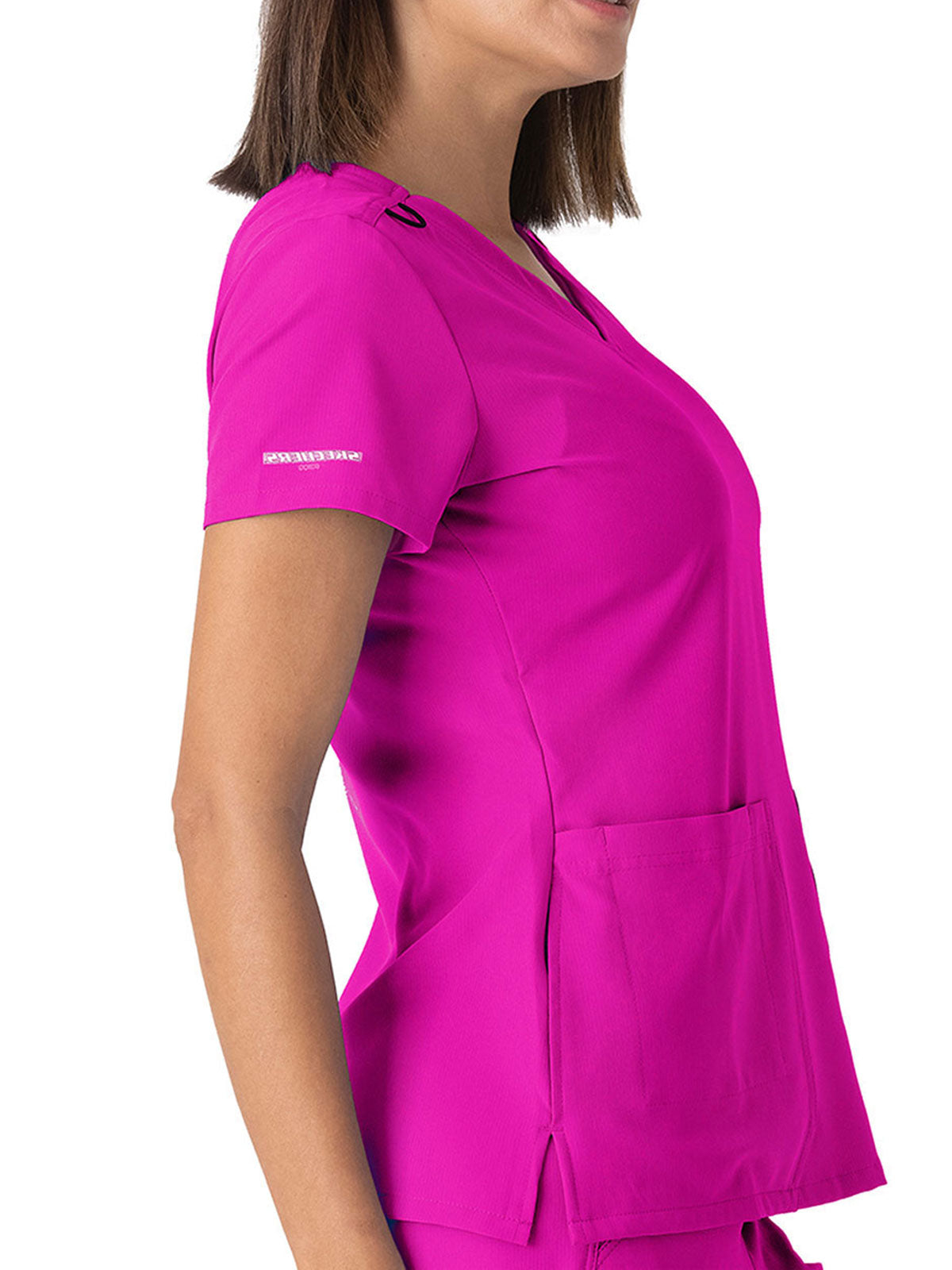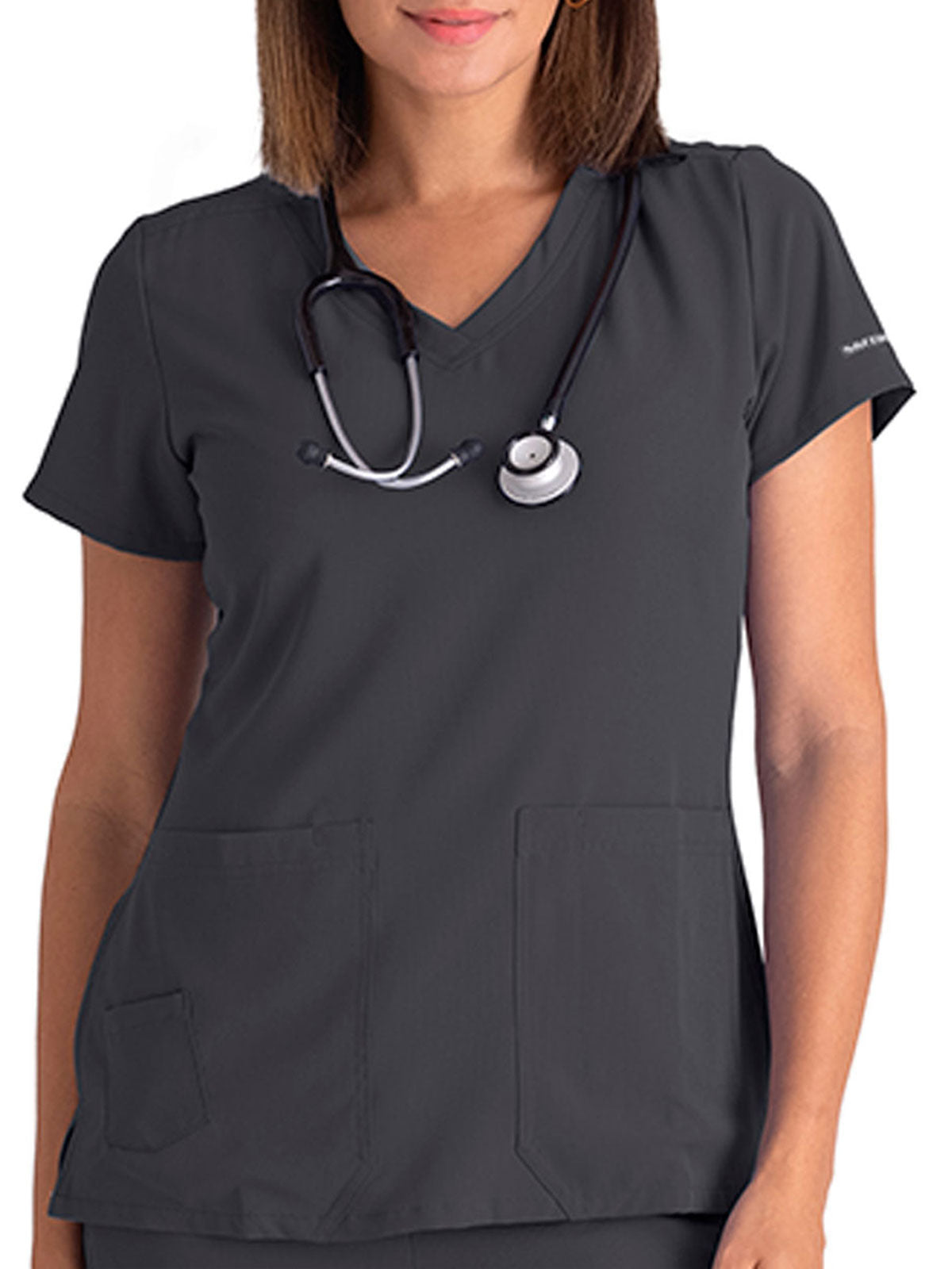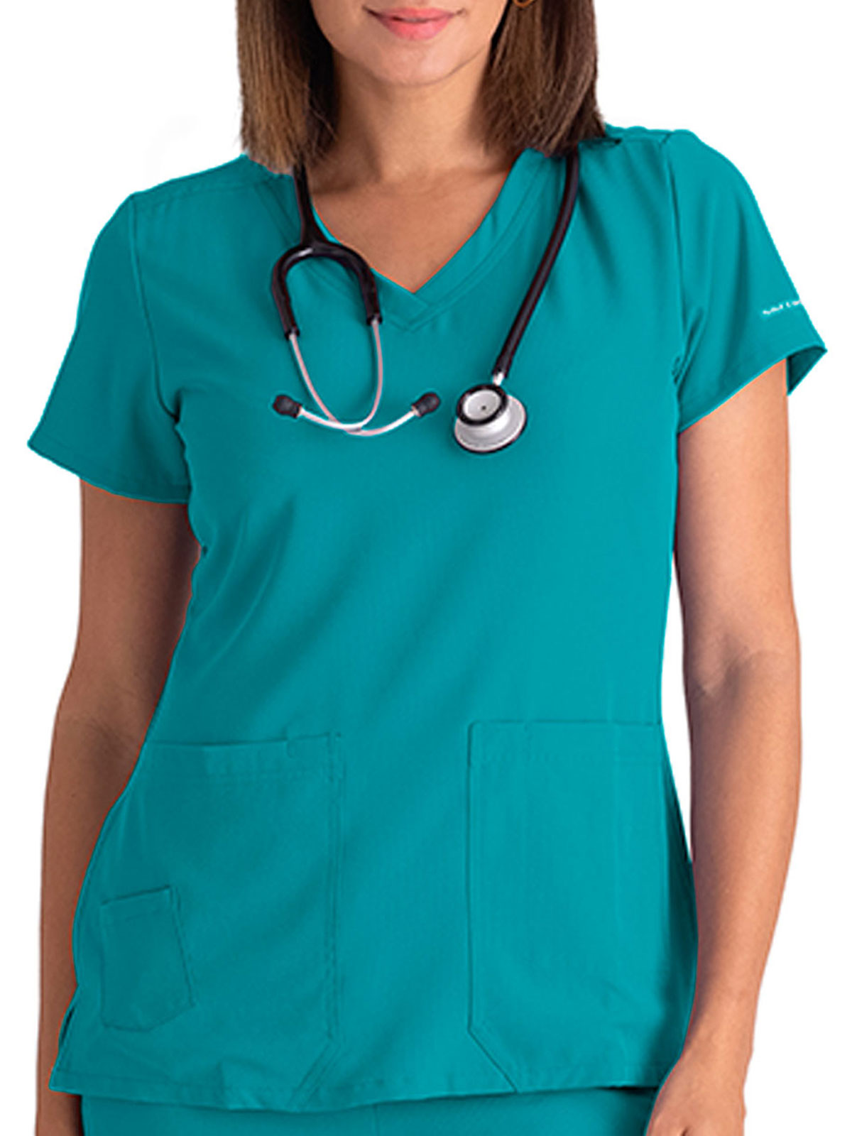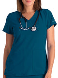 Part of an entire set of easy-to-layer separates, this scrub top brings the “stretch factor” for ultimate comfort. With a spacious cargo pocket and bungee loop to secure your badge, it’s sure to be a staple in your rotation.