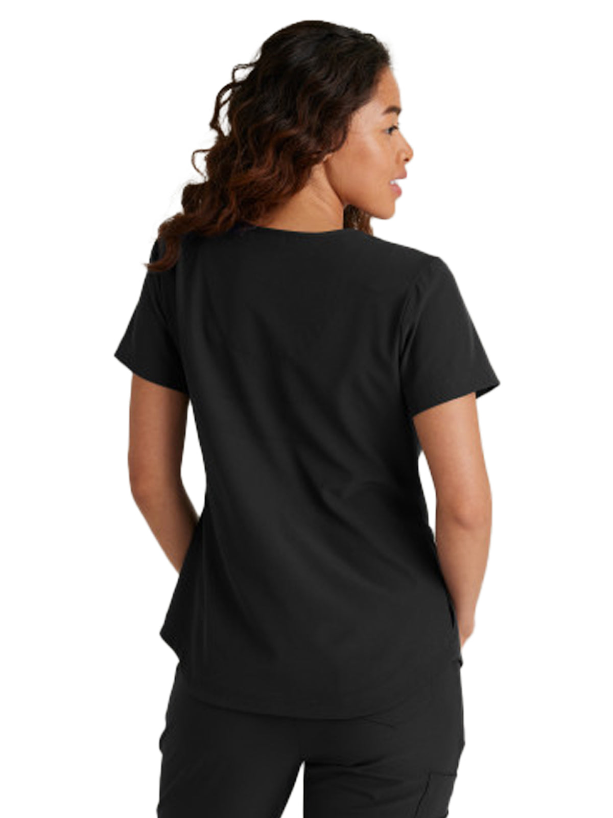 Part of an entire set of easy-to-layer separates, this scrub top brings the “stretch factor” for ultimate comfort. With a spacious cargo pocket and bungee loop to secure your badge, it’s sure to be a staple in your rotation.