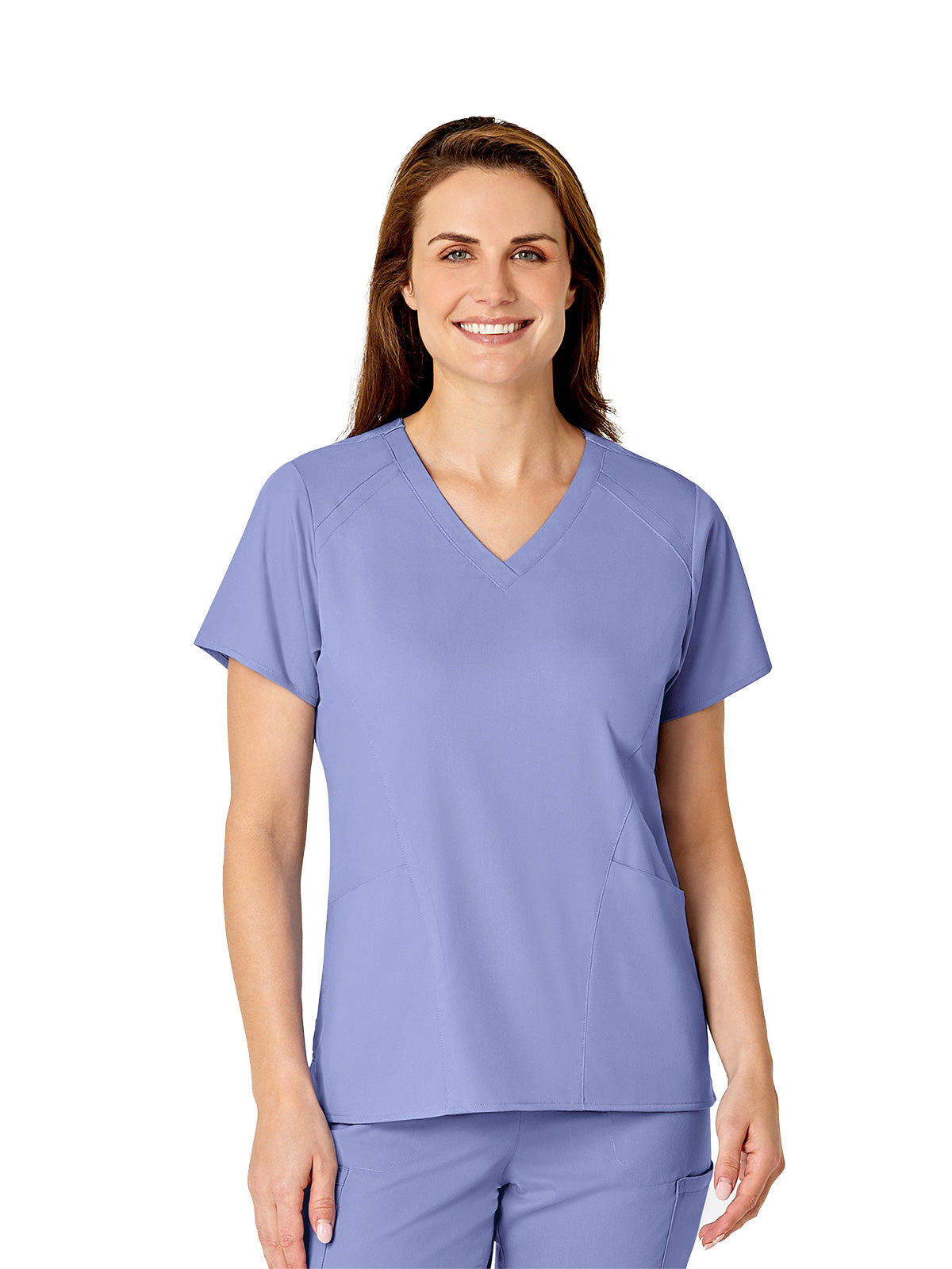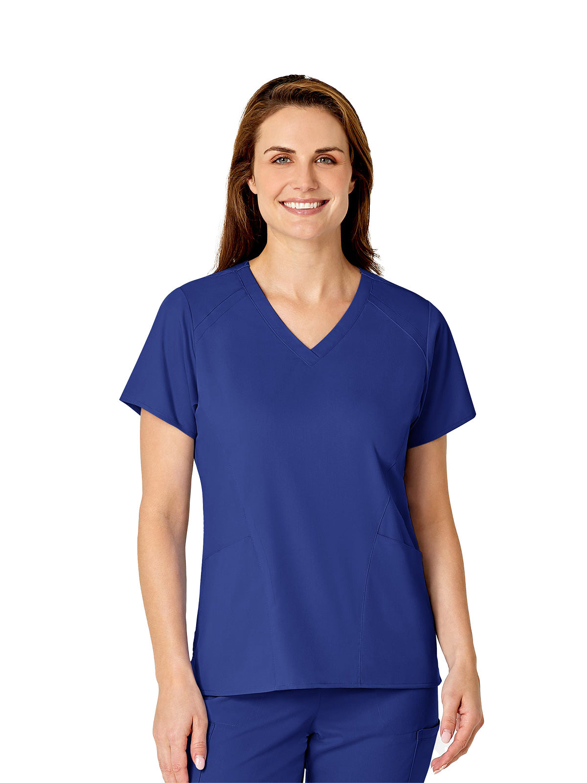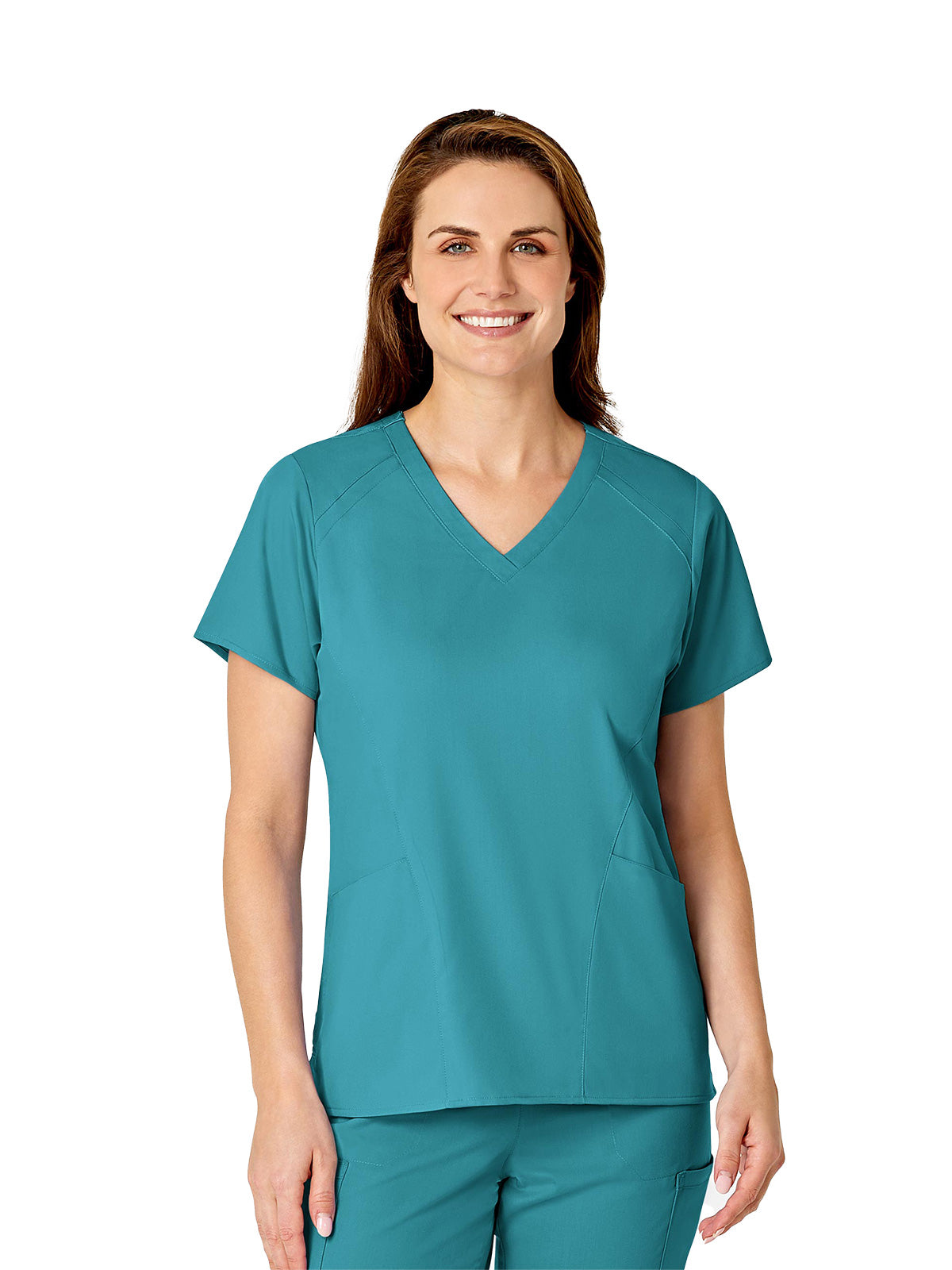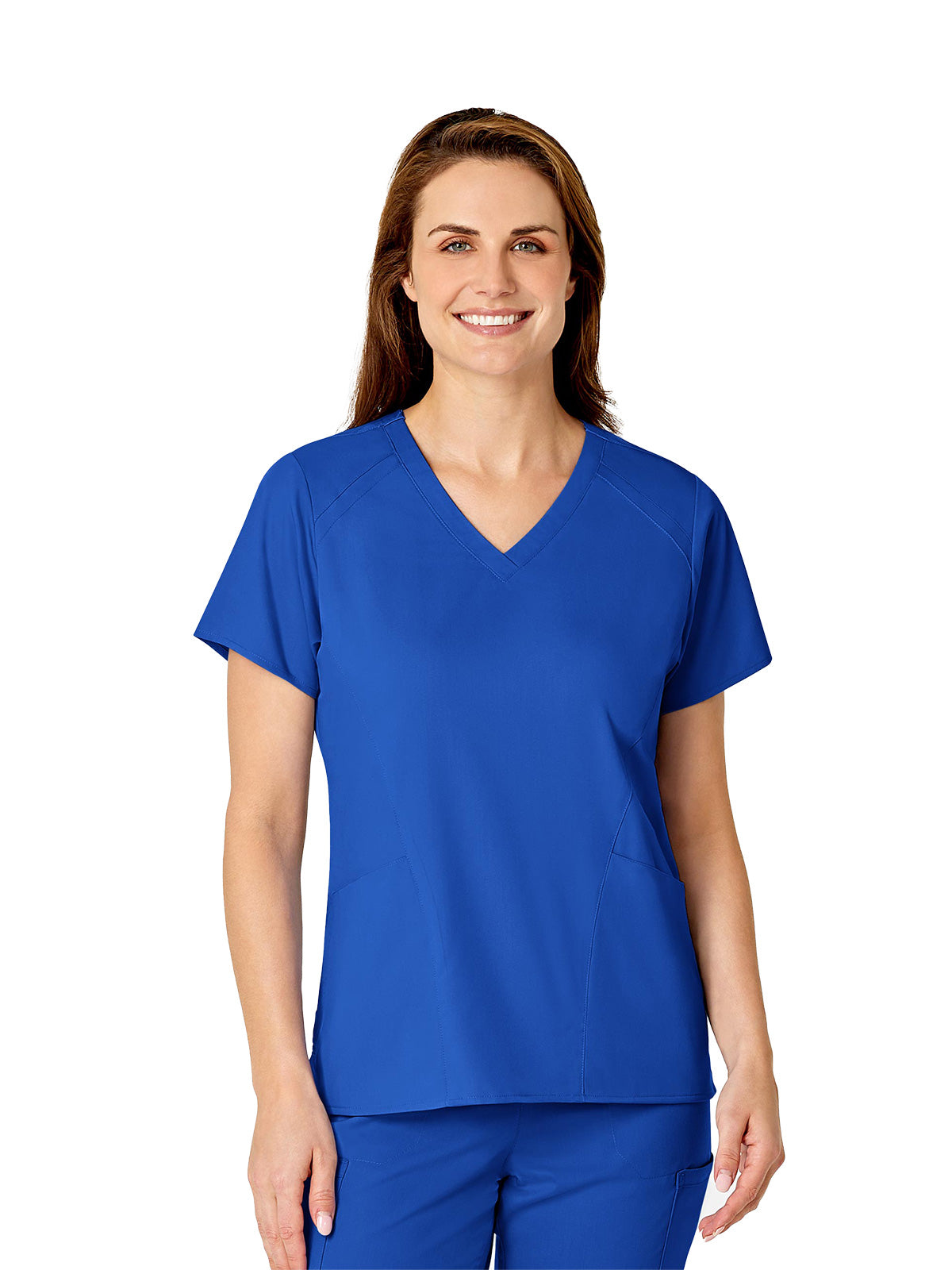 WonderWink PRO is “Designed to Work”. With its ease of care you can wash, wear and go, with the polyester, rayon and spandex fabric you can expect all day comfort. This trendy V-neck top has ample room for you instruments with two top loading pockets and two side entry pockets. The modern fit is cut closer to your shape for a flattering and contoured look without sacrificing comfort.