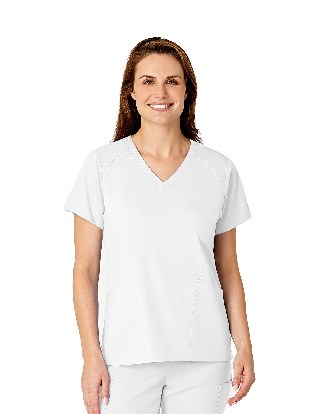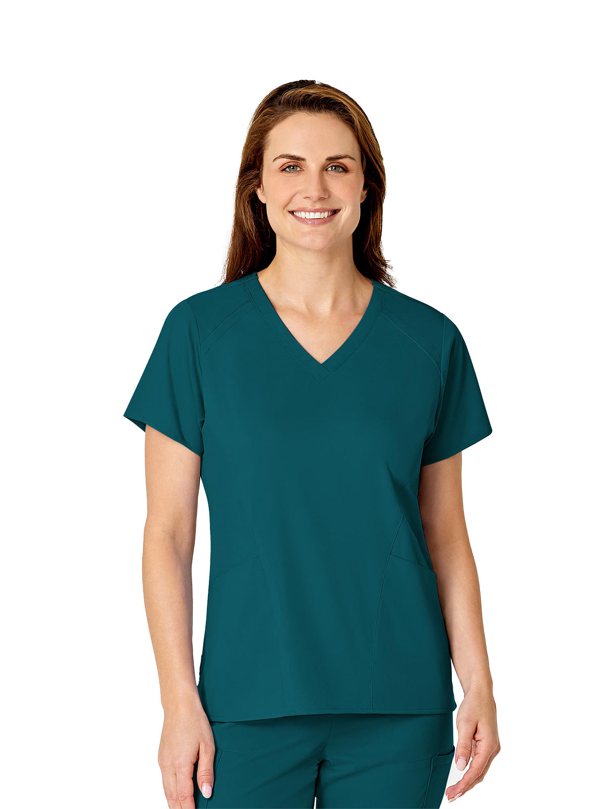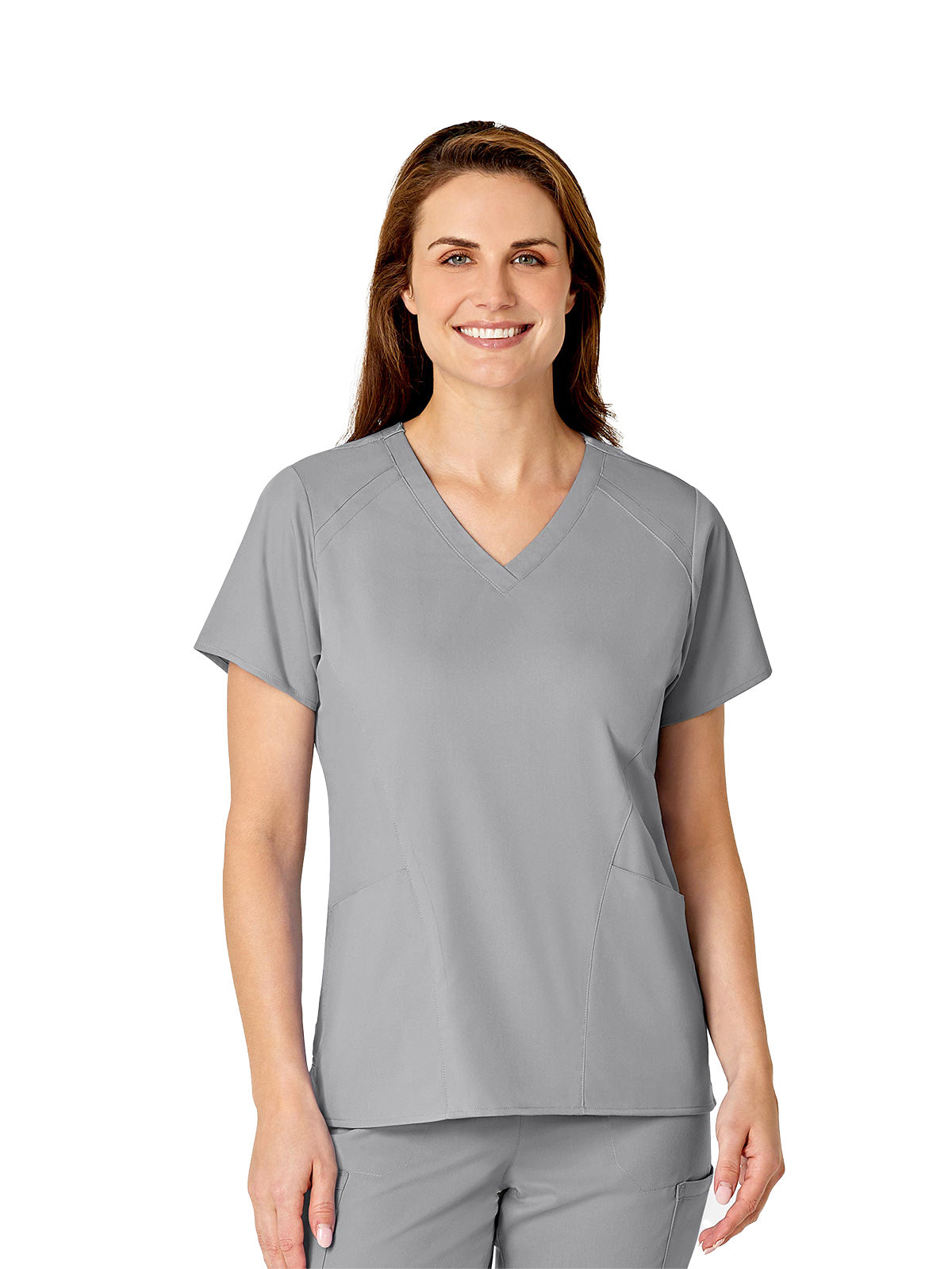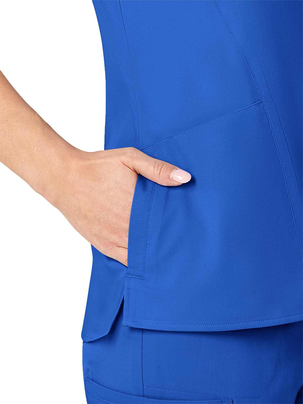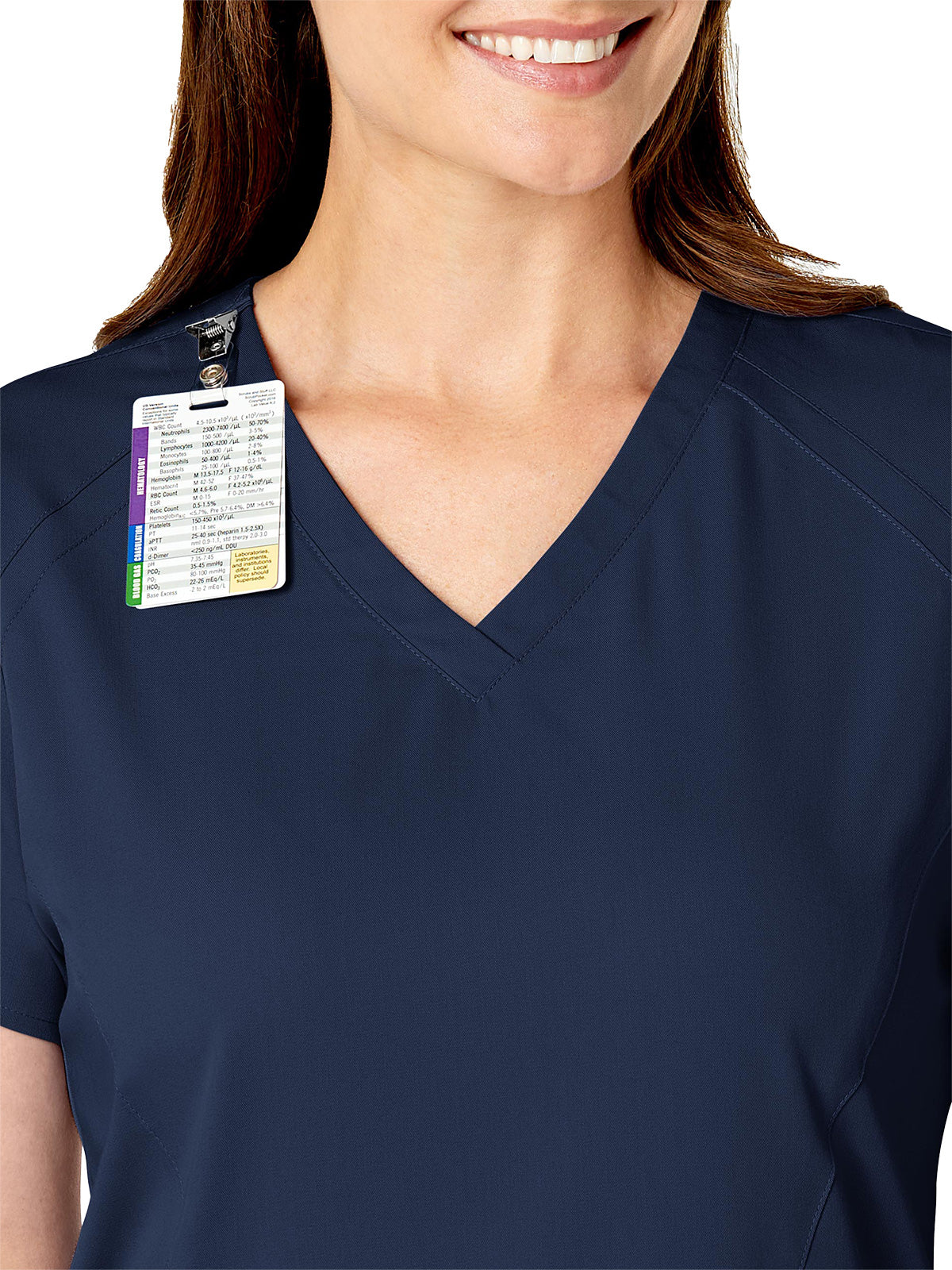 WonderWink PRO is “Designed to Work”. With its ease of care you can wash, wear and go, with the polyester, rayon and spandex fabric you can expect all day comfort. This trendy V-neck top has ample room for you instruments with two top loading pockets and two side entry pockets. The modern fit is cut closer to your shape for a flattering and contoured look without sacrificing comfort.