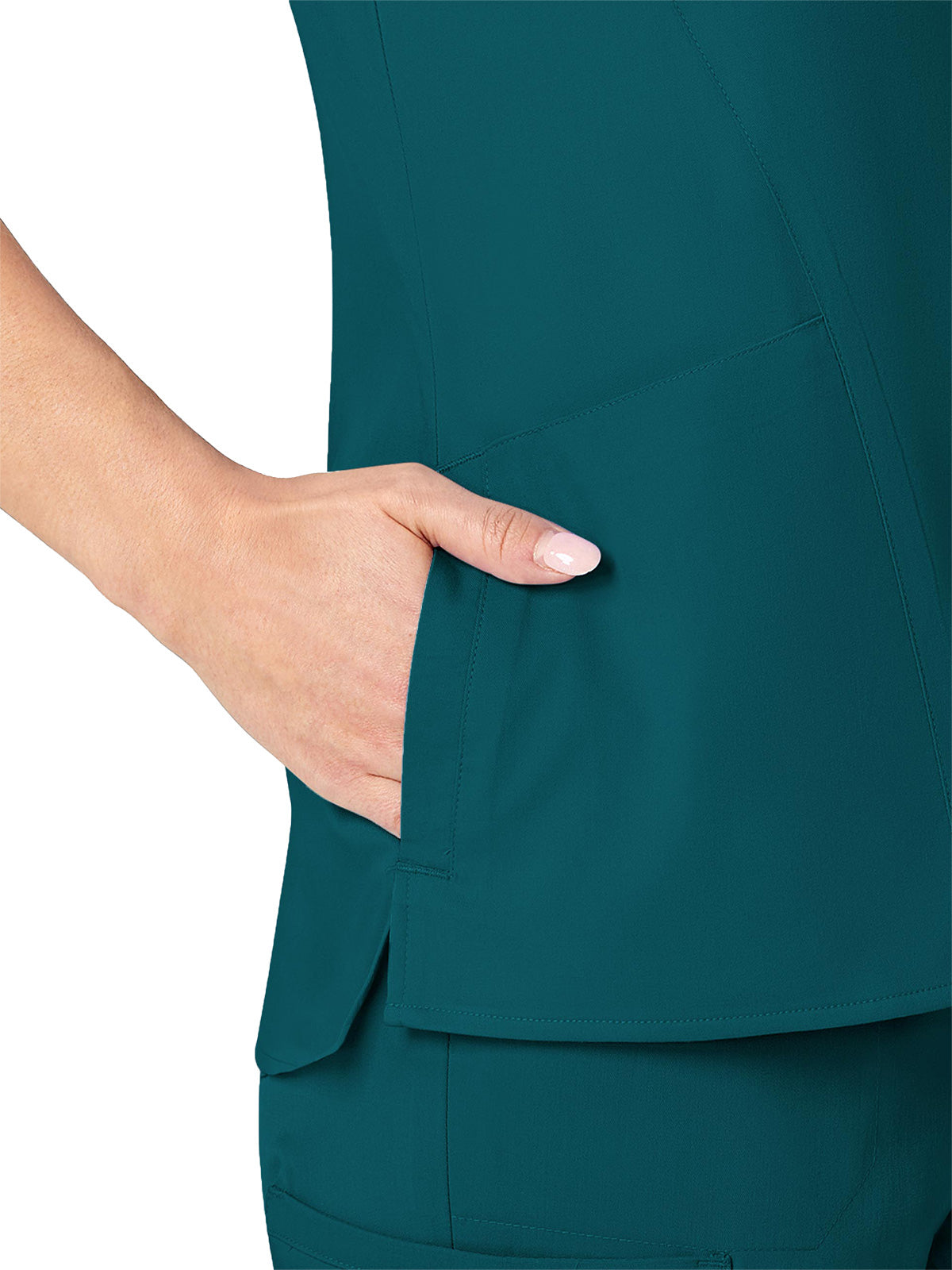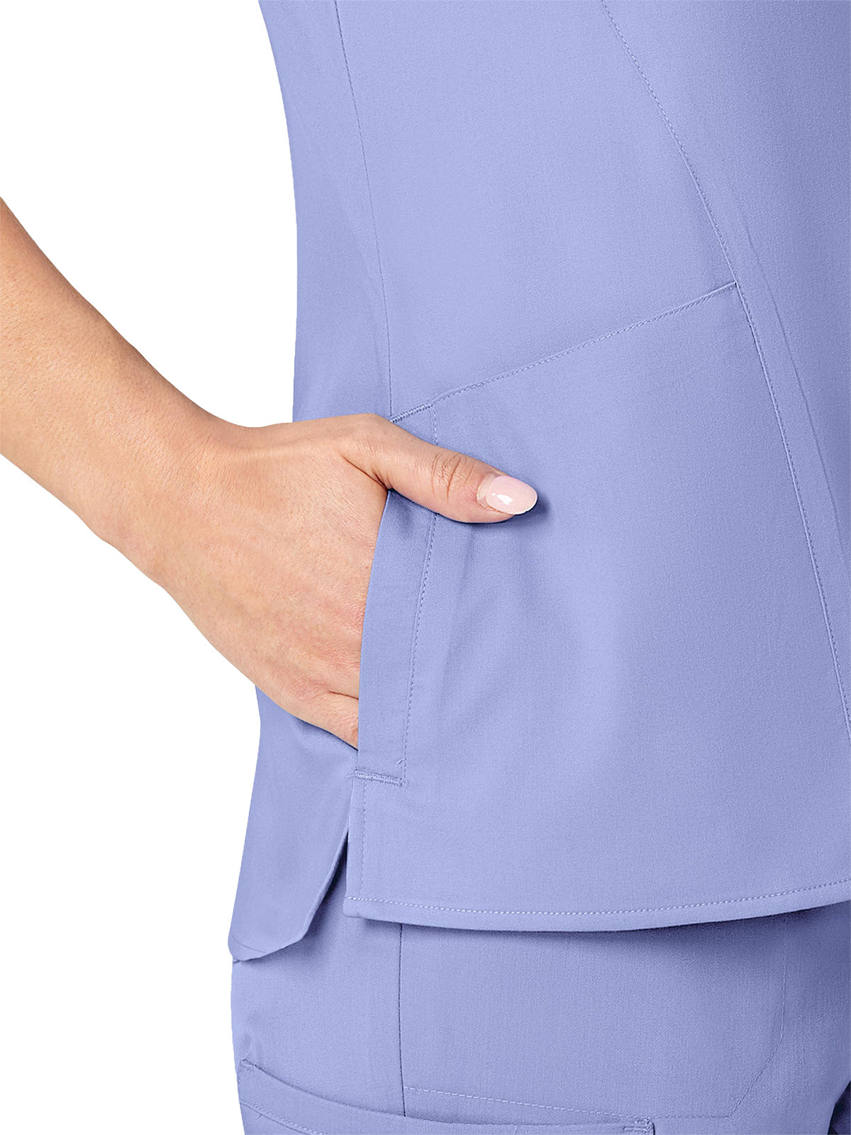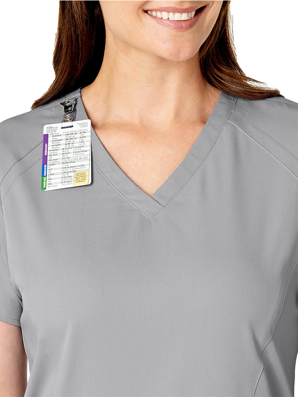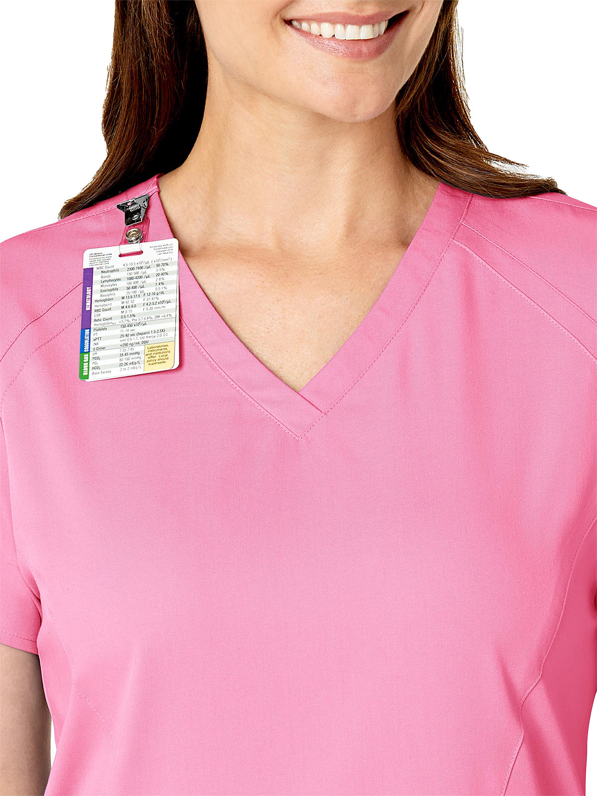 WonderWink PRO is “Designed to Work”. With its ease of care you can wash, wear and go, with the polyester, rayon and spandex fabric you can expect all day comfort. This trendy V-neck top has ample room for you instruments with two top loading pockets and two side entry pockets. The modern fit is cut closer to your shape for a flattering and contoured look without sacrificing comfort.