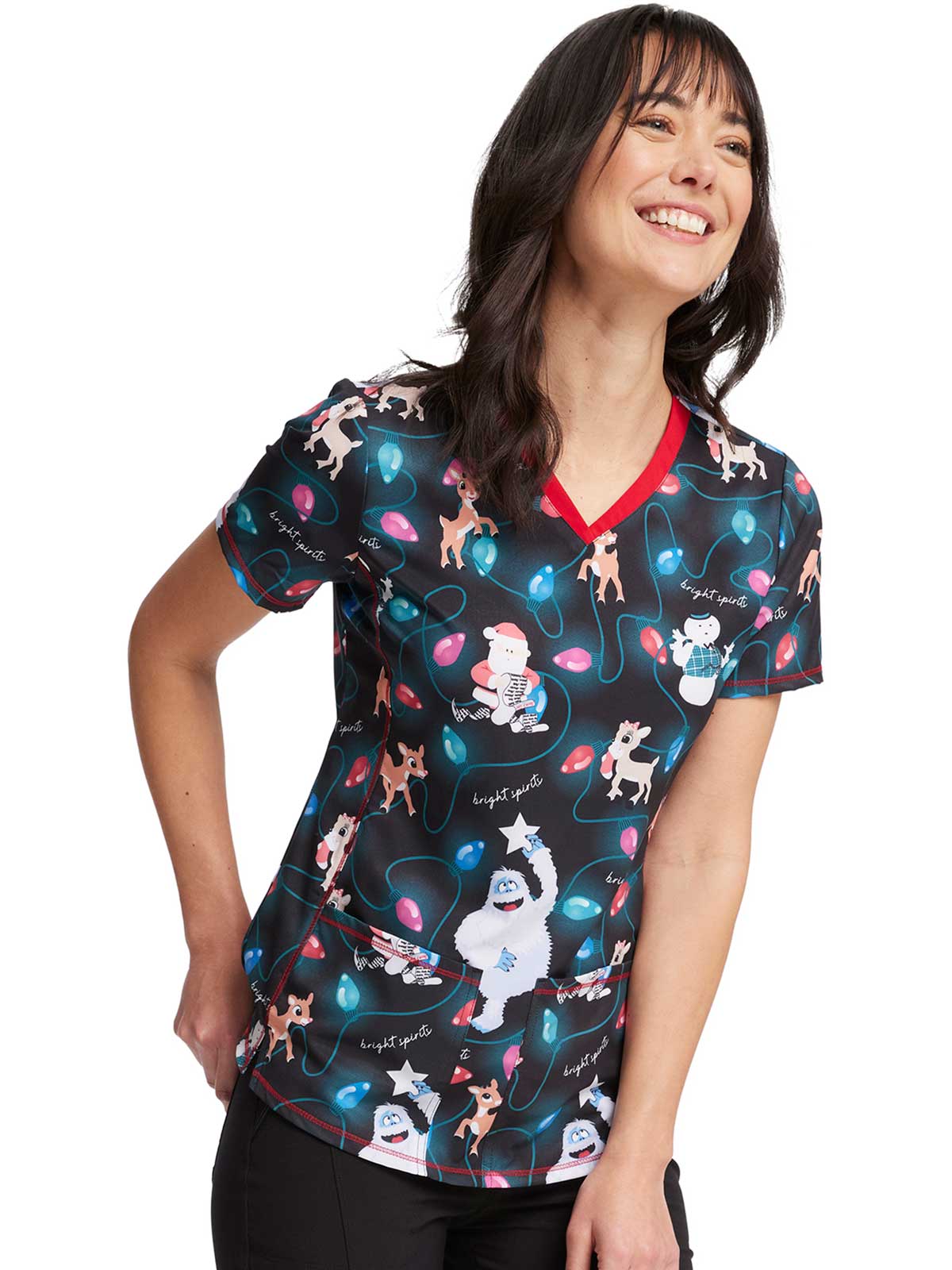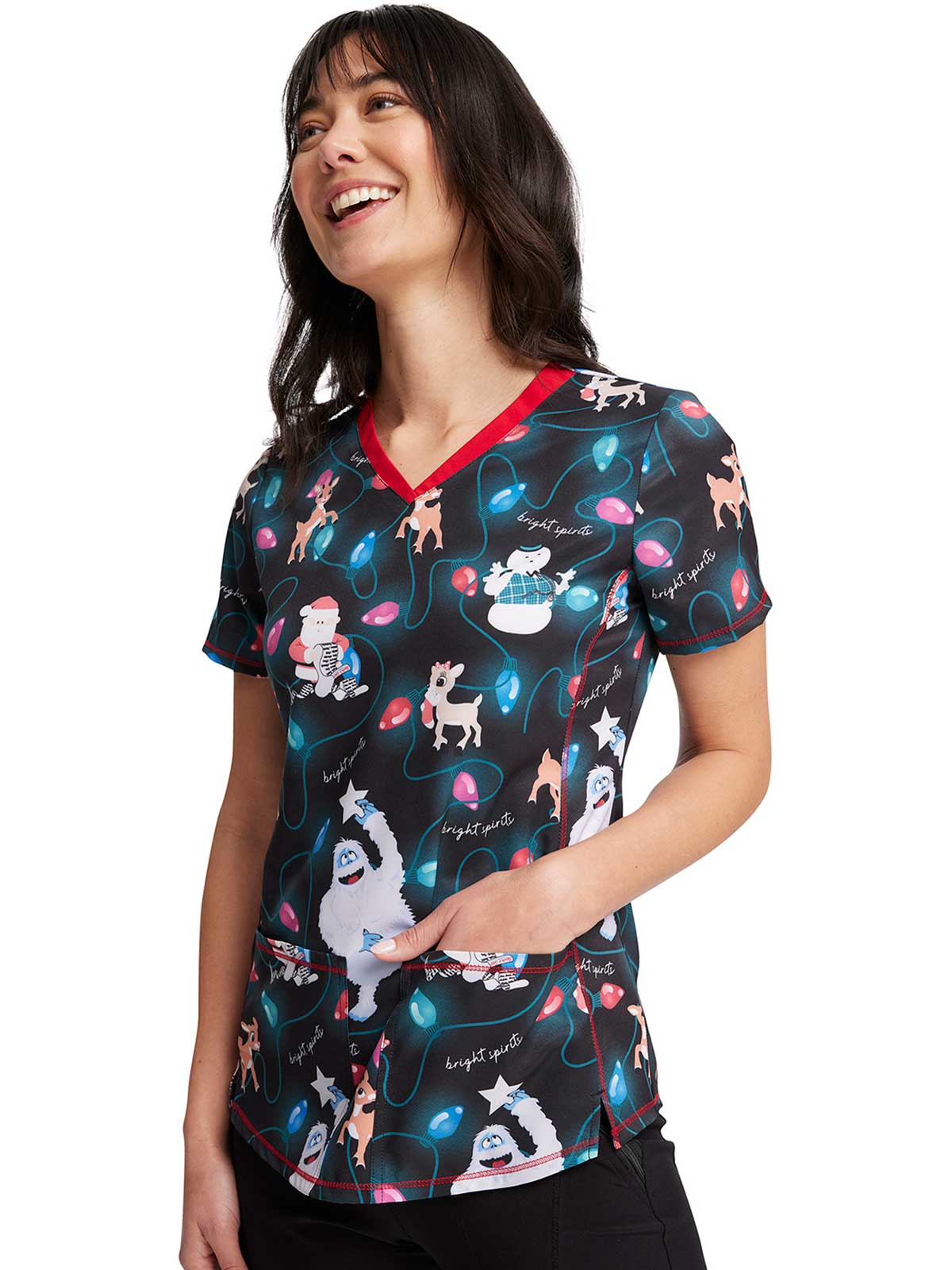This Contemporary fit V-neck print top has a contrast neckband, front princess seams and two patch pockets. Other features include front vents and a rounded hem. Center back length: 26"