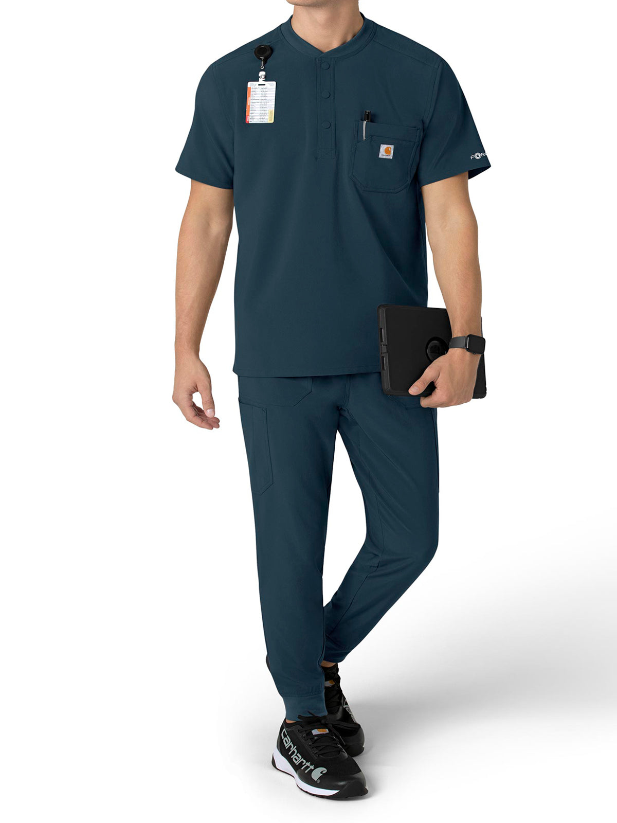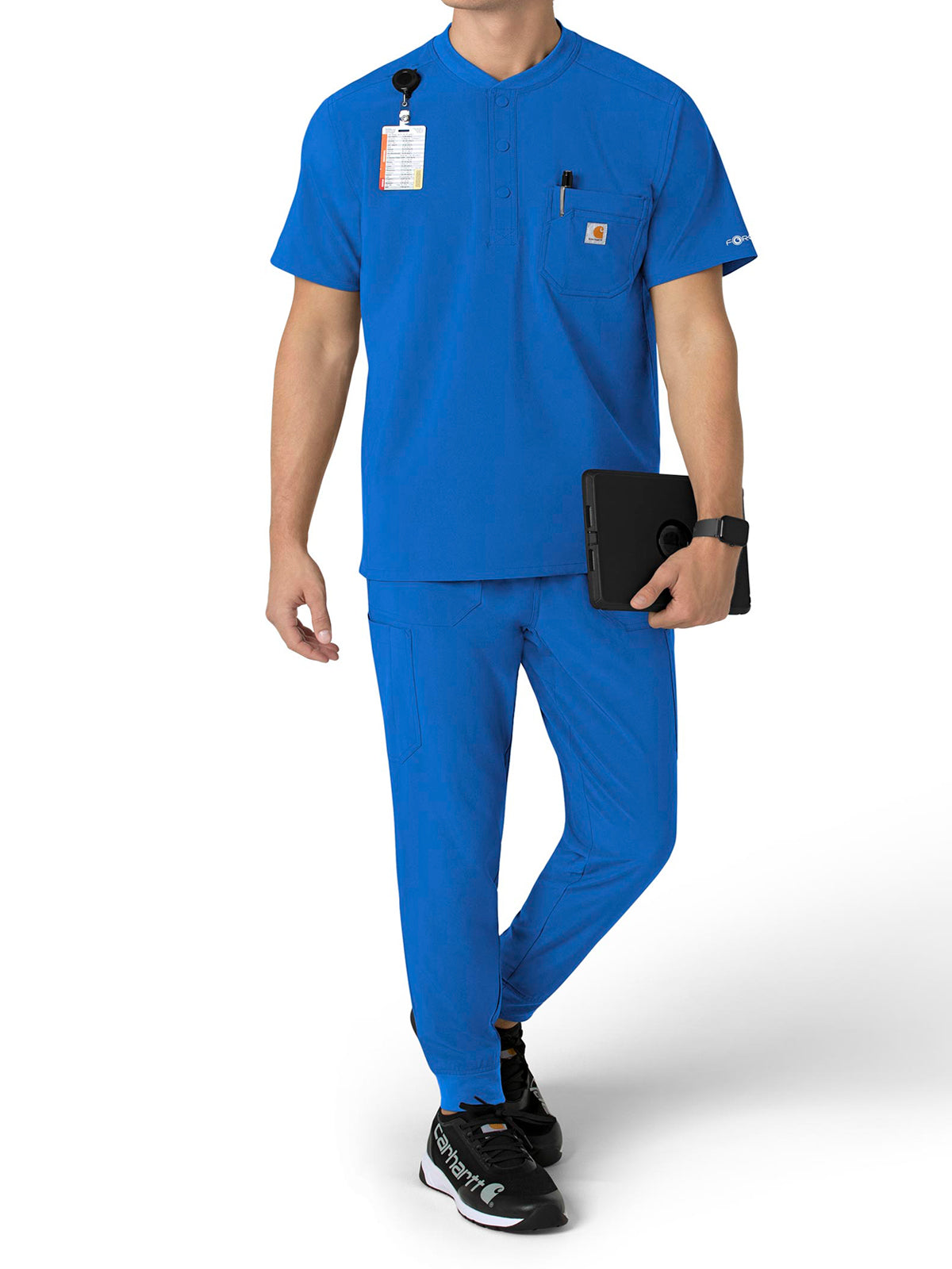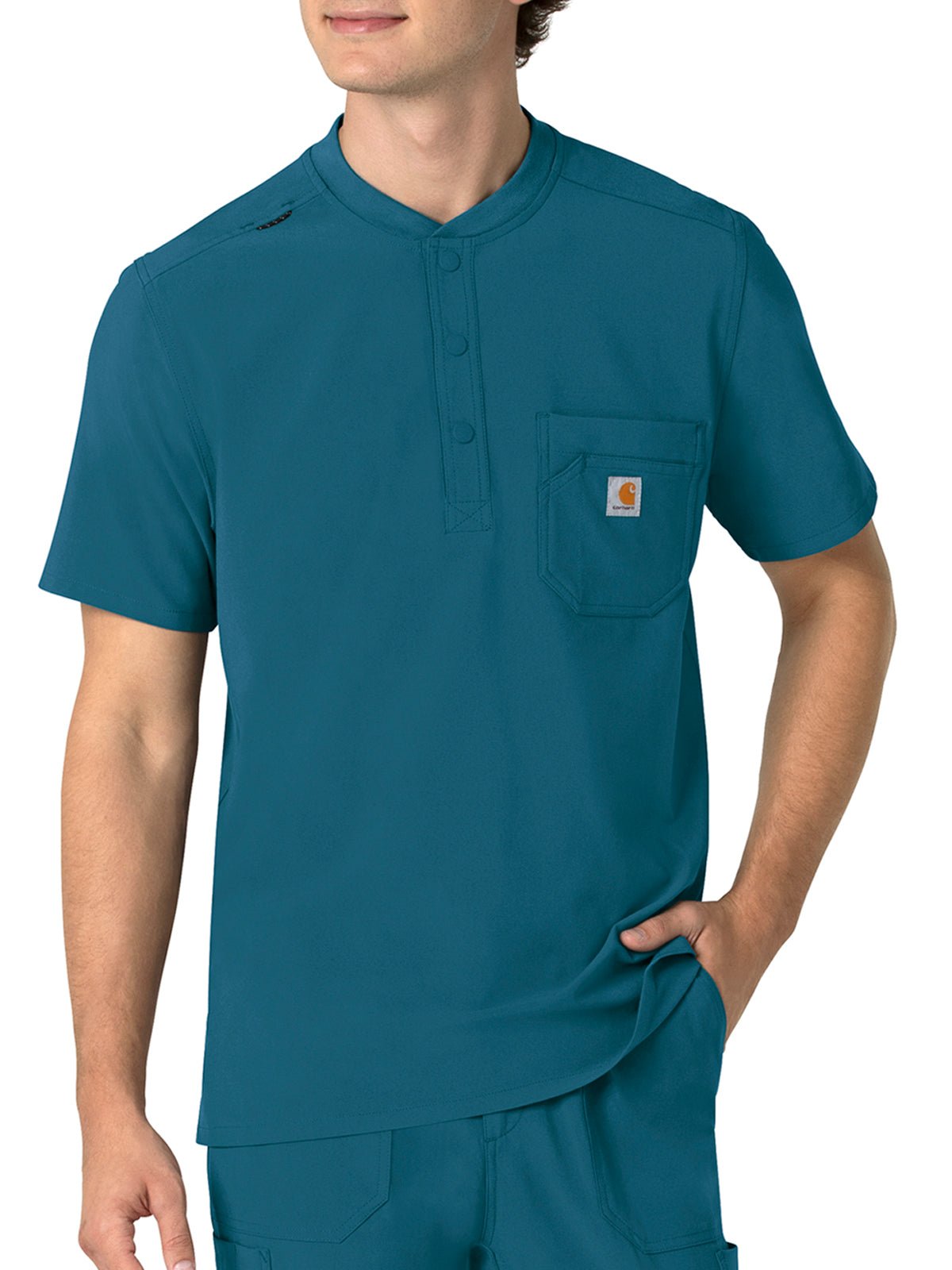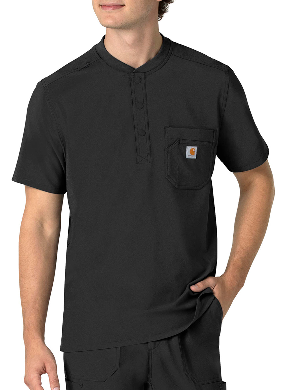 Getting dressed for work should give you the cool, calm confidence you need for a successful shift every time. That's where this men's Henley scrub top comes in, delivering plenty of comfort with essential utility. Store smaller items in the triple-stacked chest pocket, built with a hidden zipper for cleverly concealed storage. Keep your pen handy at all times in a dedicated slot for stay-put convenience.