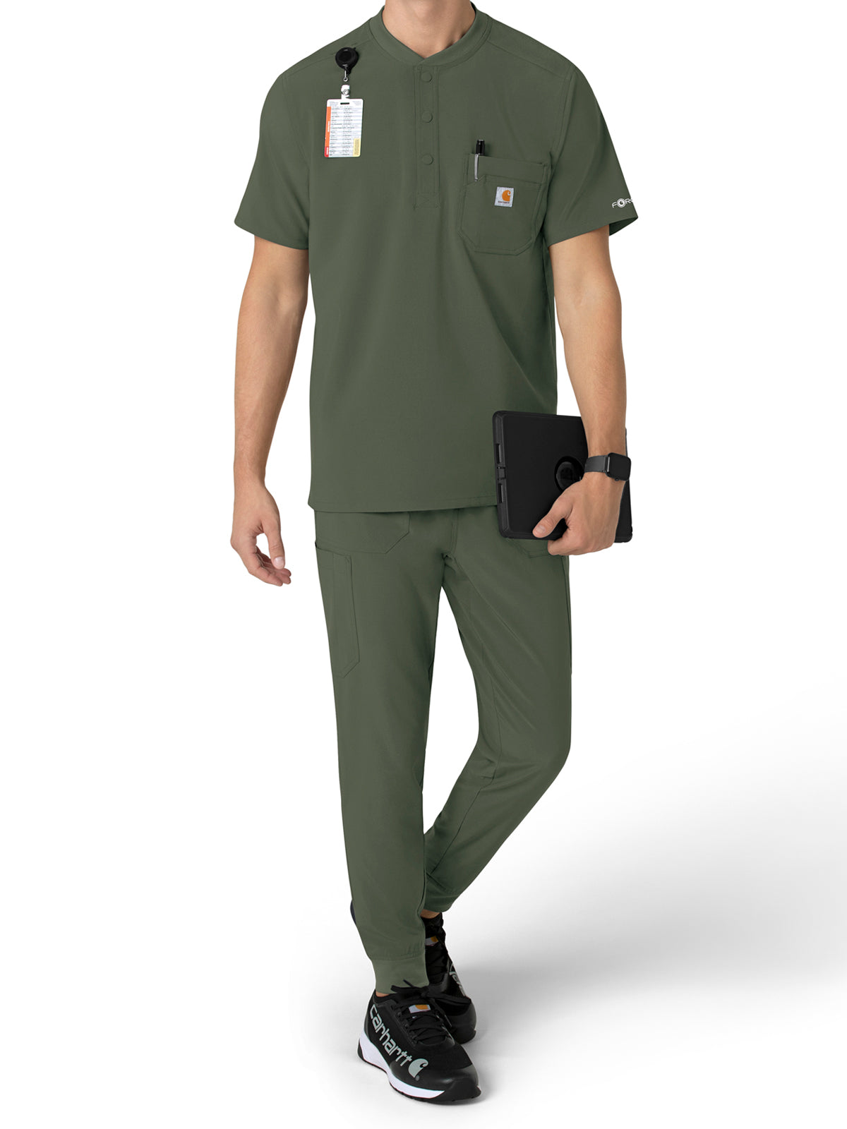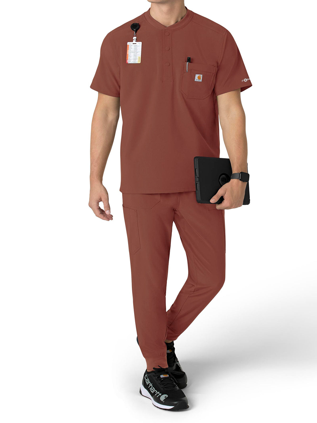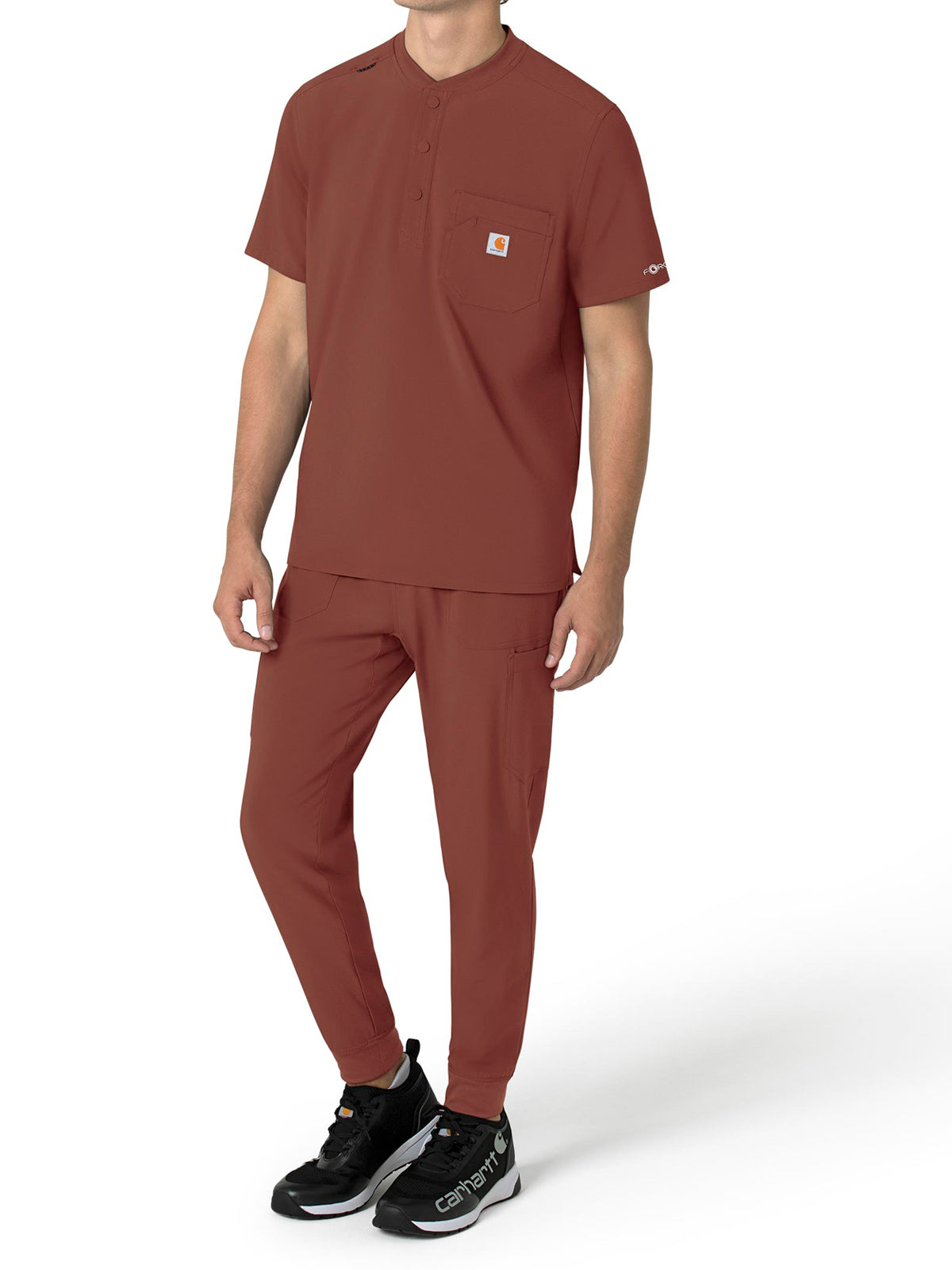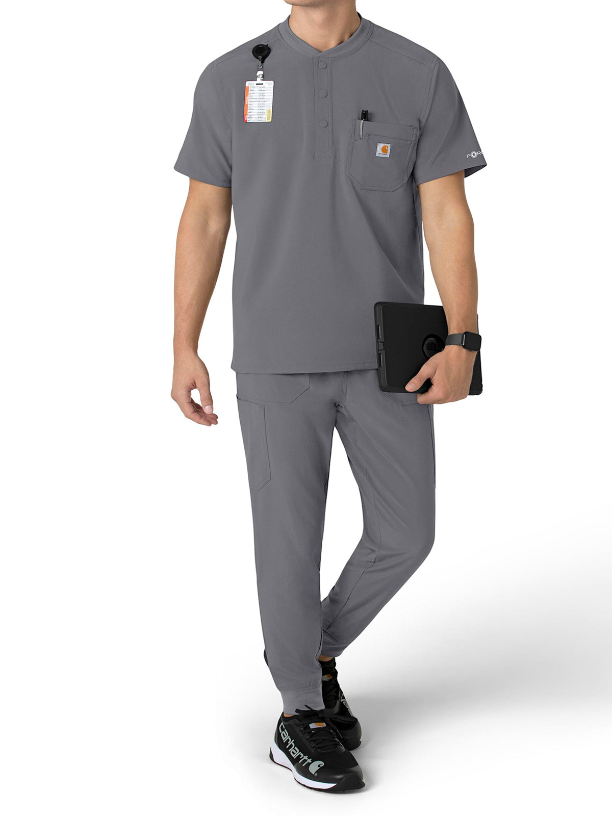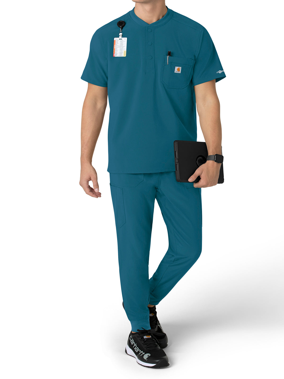 Getting dressed for work should give you the cool, calm confidence you need for a successful shift every time. That's where this men's Henley scrub top comes in, delivering plenty of comfort with essential utility. Store smaller items in the triple-stacked chest pocket, built with a hidden zipper for cleverly concealed storage. Keep your pen handy at all times in a dedicated slot for stay-put convenience.