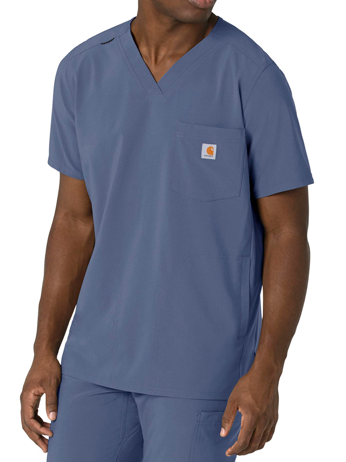 You need comfort and utility you can always count on, from the moment a shift starts until you're ready to head home. This men's scrub top gets it, and it's built to last through every demanding day. It's made with a soft, stretchy material that includes micro ripstop for durability. Keep your most-used items right where you need them in a chest pocket that has a pen slot, plus two larger pockets on the side that allow for easy access to tools and supplies.