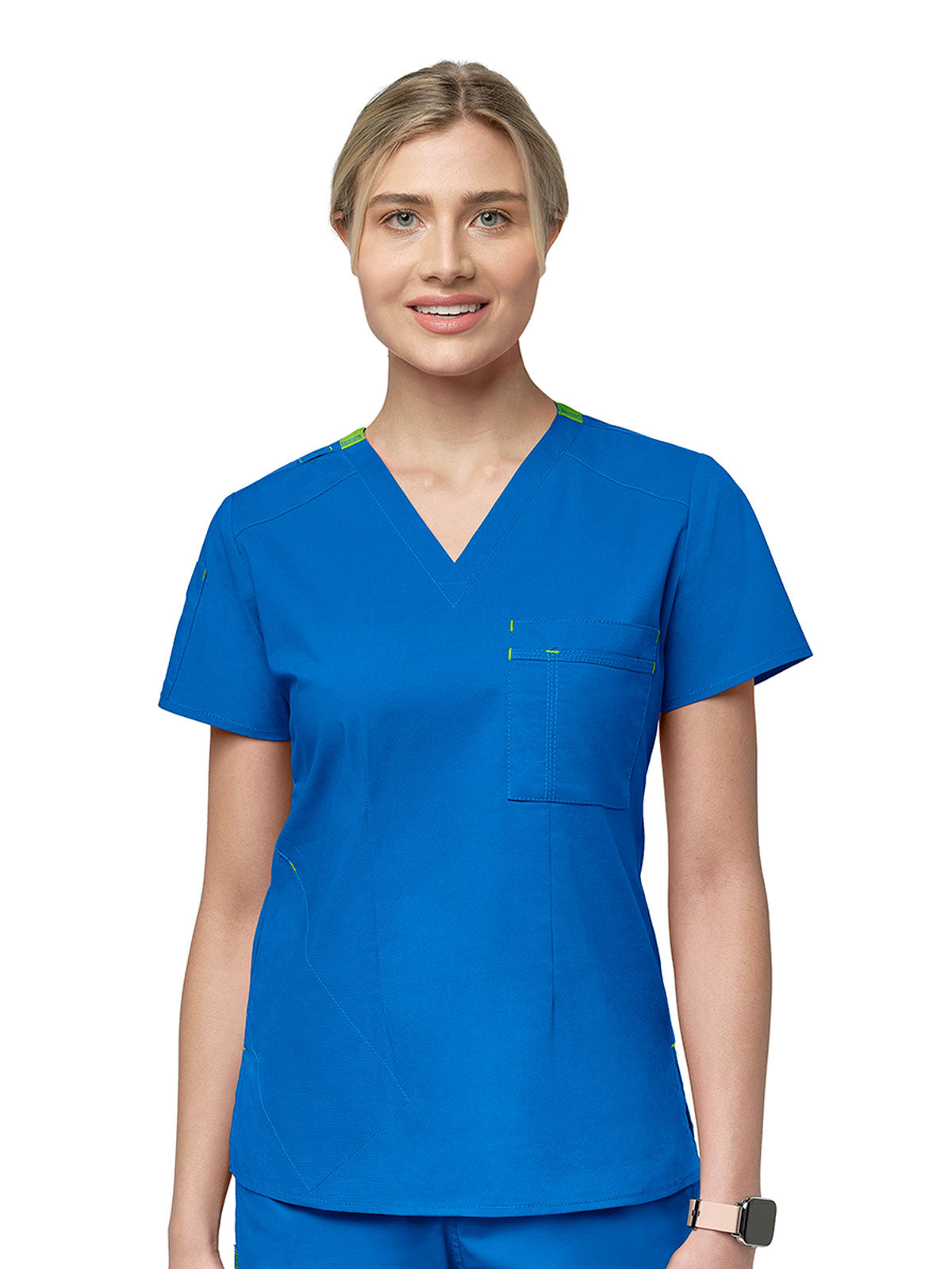 WonderFlex - Women's Chest Pocket V-Neck Tuck In Scrub Top