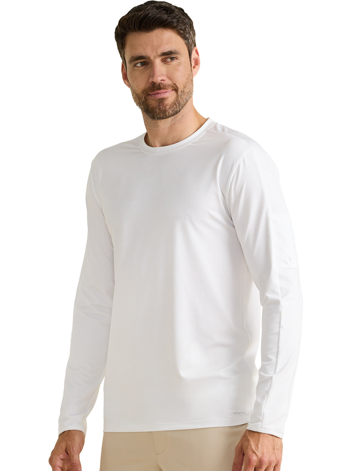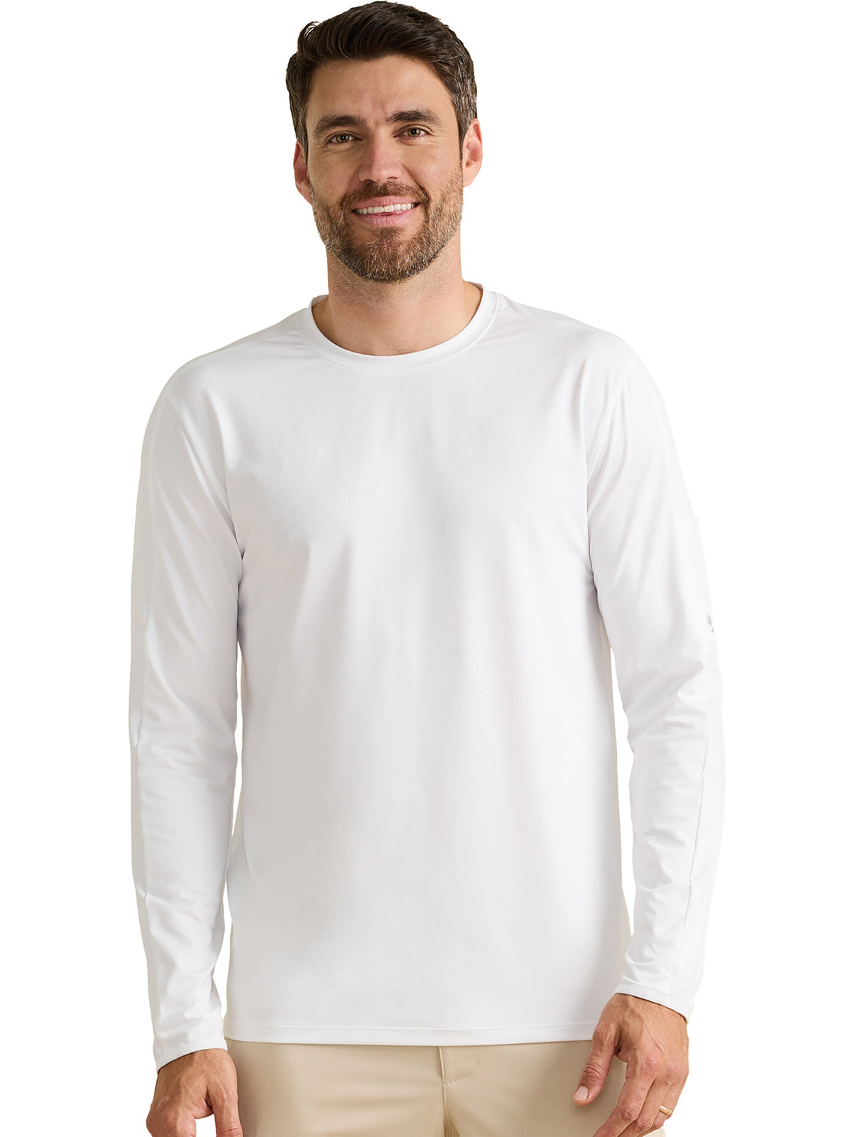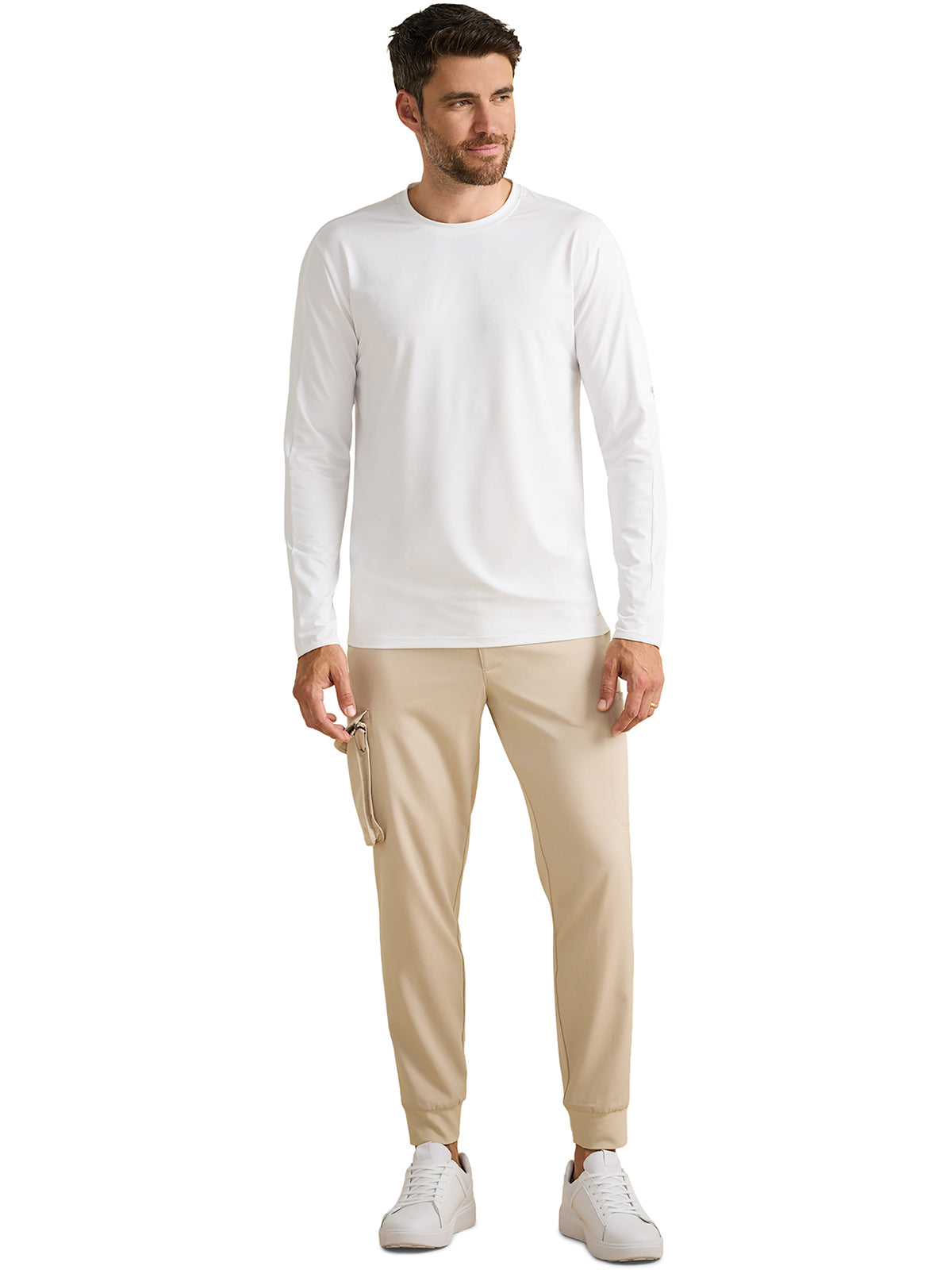 With work-to-weekend approved styling, the Healing Hands x Dr. Kwane Men's Vaughn long sleeve tee shirt is sure to please. The pique knit performance tee has a crew neck, one pocket on the wearer's upper left sleeve, and racer-style sleeve panels. The long sleeves are finished with elasticized cuffs which stay in place when pushed up (great for frequent hand washing). Modern fit. Center back length: 29"