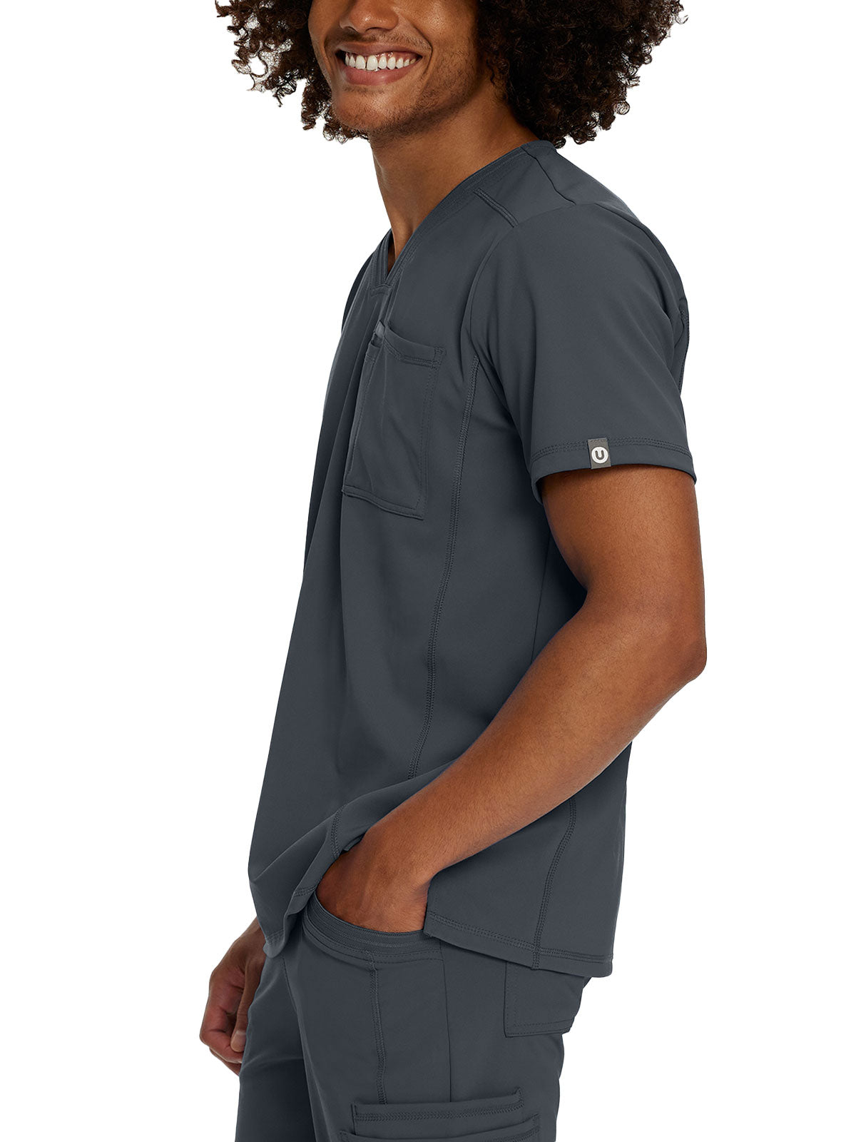 Encouraging courage without compromising convenience, our Urbane Impulse Men's 1-pocket V-neck scrub top blends elegance and efficiency. Regardless of where you choose to wear this uniform, with its one pocket, stretchable fabric, and unique stitching, it will never fail to look just as stunning as it feels.