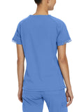 Shadow stripe details add eye-catching style to the Urbane Impulse Women's Stripe Trim Solid Scrub Top. This simple top has a single chest pocket, so it's ideal for tucking in to your scrubs. Banded v-neckline Shadow stripe elastic trim at...